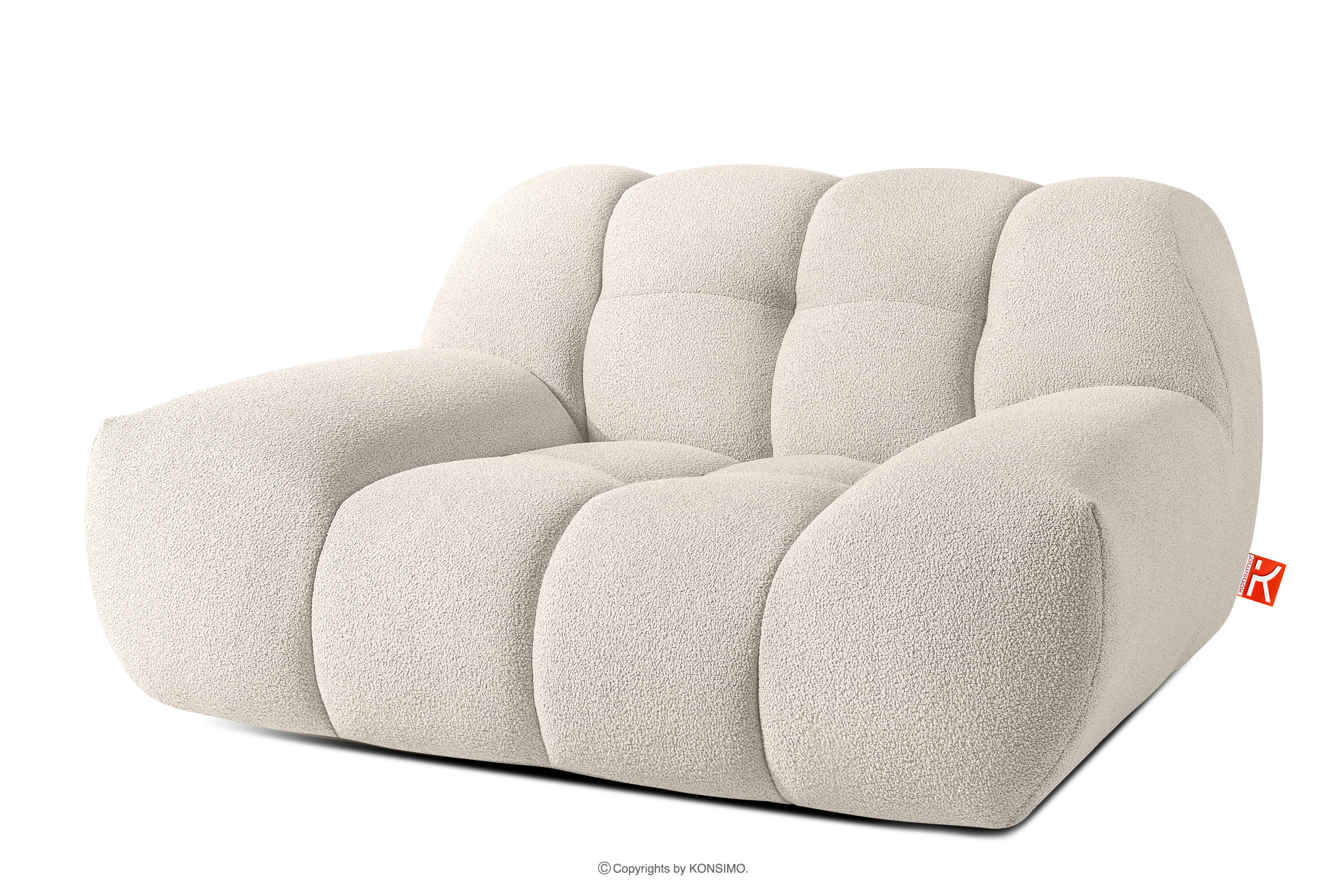 Möbelset: Sofa Sessel und Sitzhocker im Japandi-Stil weiß ist nicht nur Möbel, sondern eine Manifestation von Stil, Komfort und Innovation, die für die anspruchsvollsten Nutzer geschaffen wurde. Diese Kollektion fügt sich perfekt in die harmonische Ästhetik von Japandi ein und verwandelt jeden Innenraum in eine Oase der Ruhe und Raffinesse. Das auffälligste Merkmal ist die innovative „Bubble”-Form, die für einen einzigartigen, weichen Look sorgt.