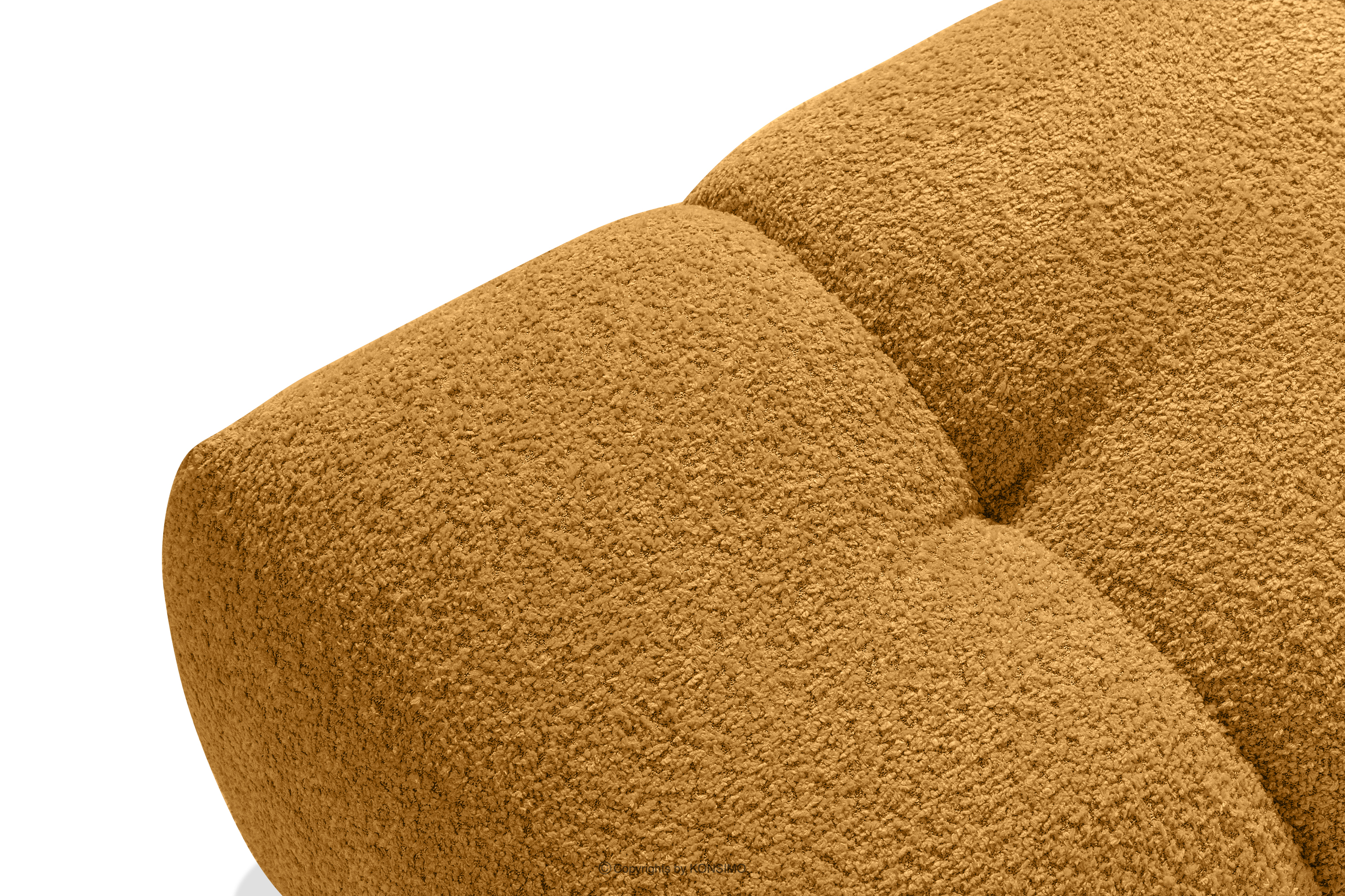 Sitzhocker mit Steppung im Japandi-Stil Boucle honigfarben verbindet die strenge Eleganz des japanischen Designs mit dem gemütlichen Minimalismus skandinavischer Innenräume. Die Kollektion RAVIA ist mit einem einzigartigen Bouclé-Stoff bezogen, der nicht nur durch seine Struktur und Weichheit besticht, sondern den Möbeln auch einen luxuriösen Charakter verleiht. Sie bringt Ruhe und Harmonie in jeden Raum.