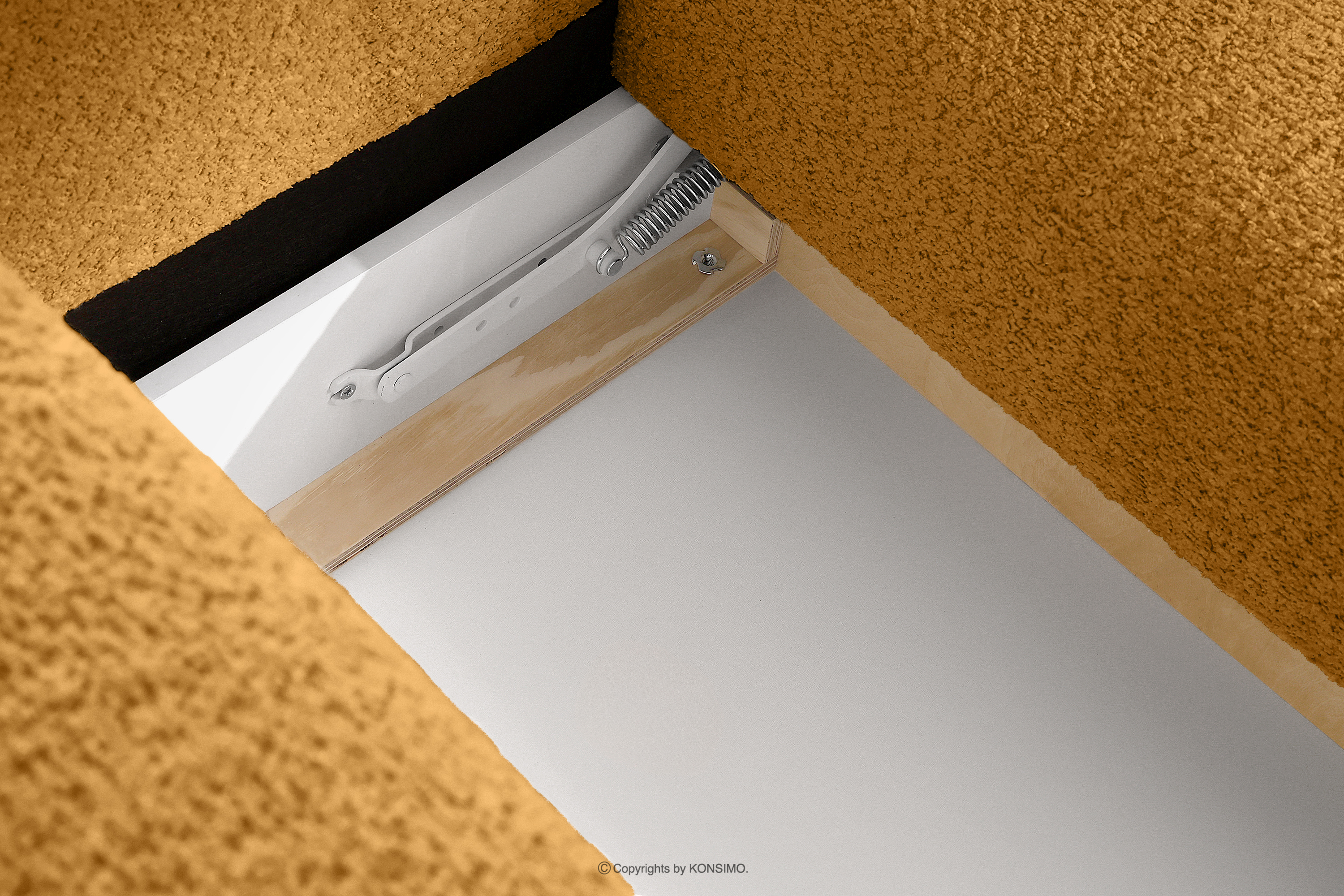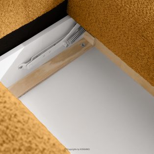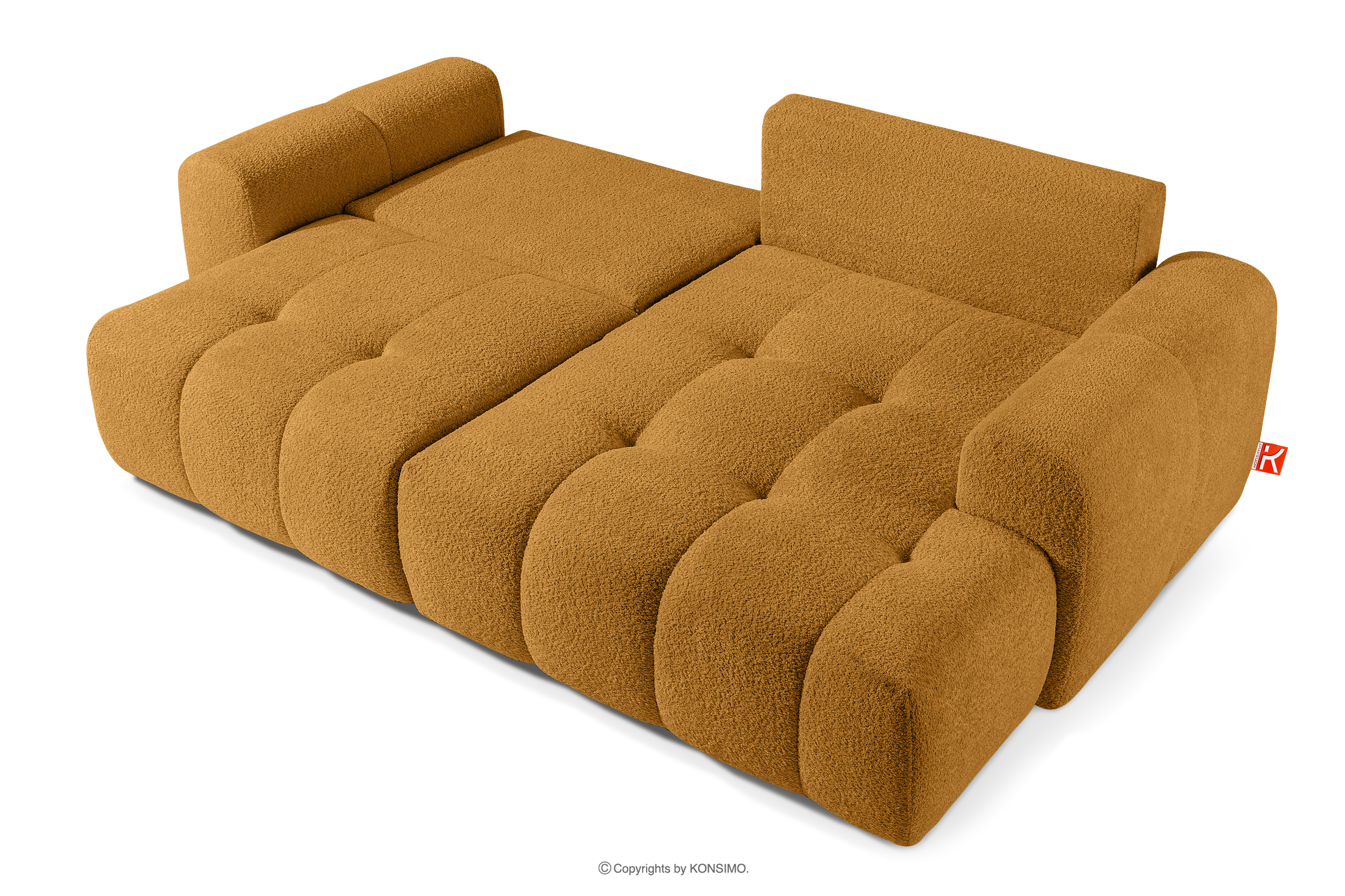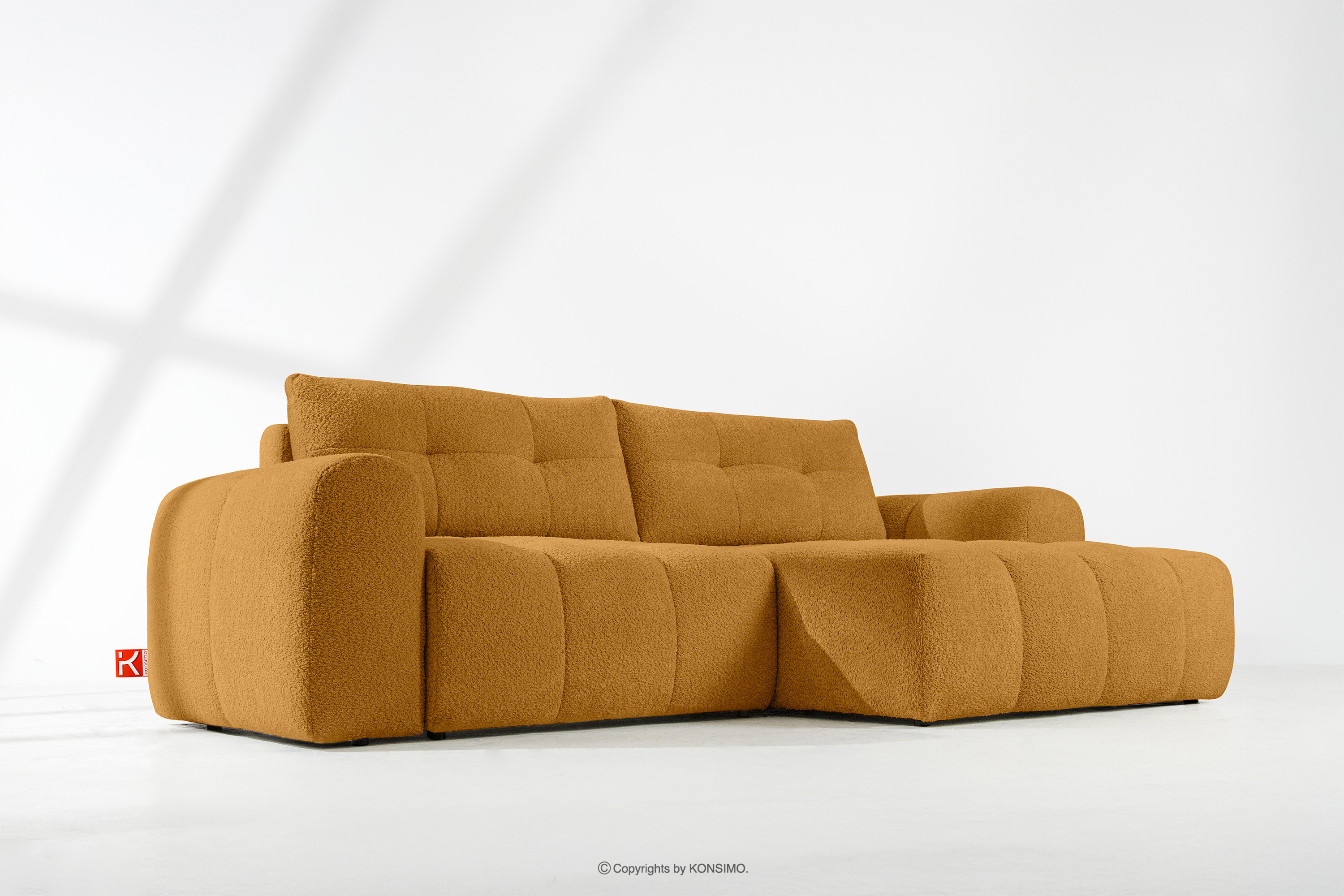 Ecksofa mit Steppung im Japandi-Boucle-Stil rechts honigfarben verbindet die strenge Eleganz des japanischen Designs mit dem gemütlichen Minimalismus skandinavischer Innenräume. Die Kollektion RAVIA ist mit einem einzigartigen Bouclé-Stoff bezogen, der nicht nur durch seine Struktur und Weichheit besticht, sondern den Möbeln auch einen luxuriösen Charakter verleiht. Sie bringt Ruhe und Harmonie in jeden Raum.