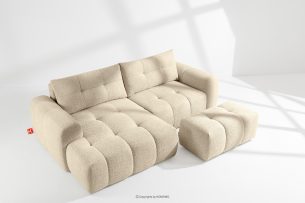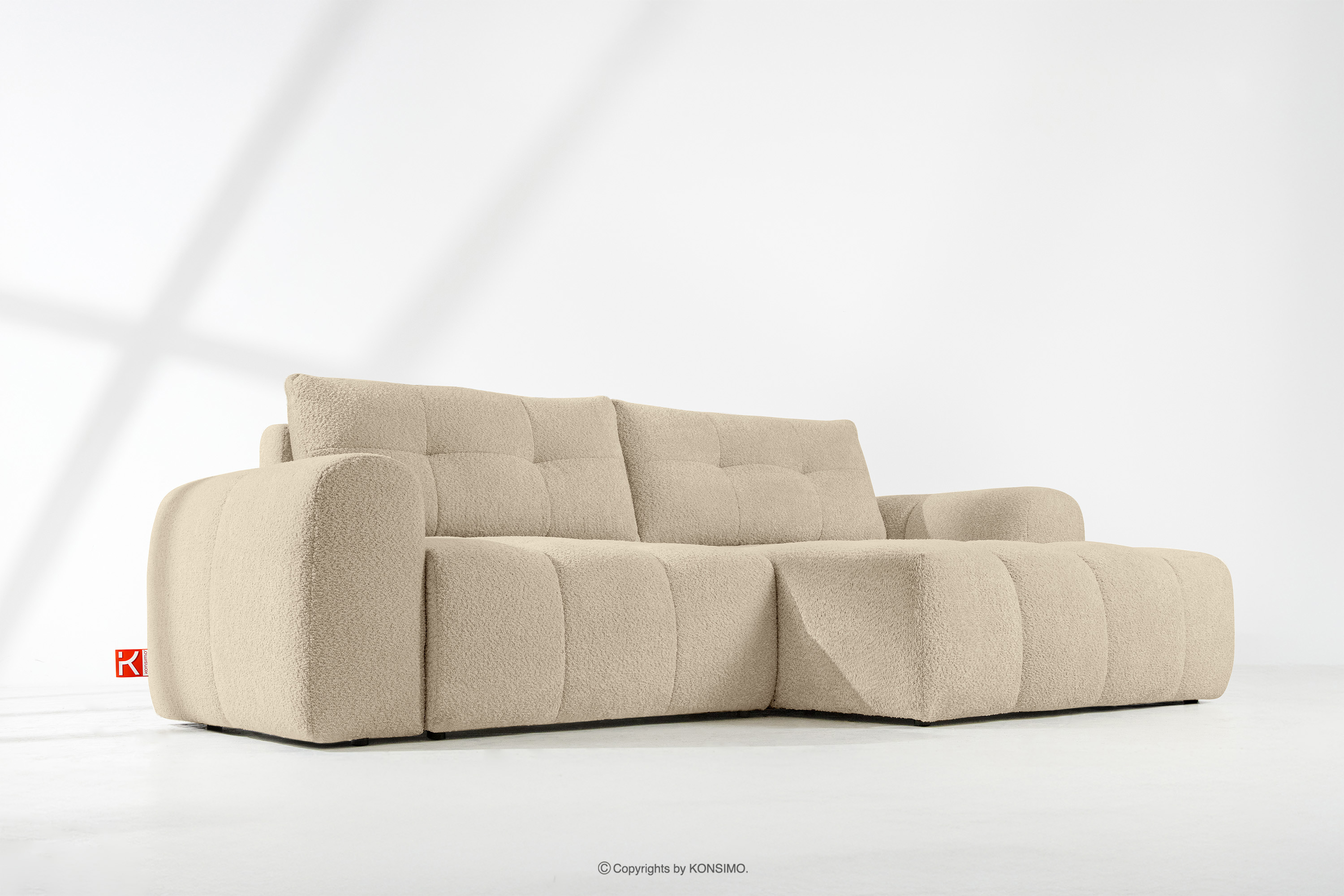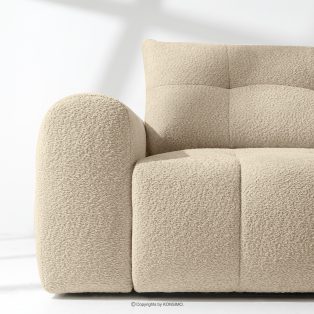 Loungeset im Japandi-Stil Boucle hellbeige verbindet die strenge Eleganz des japanischen Designs mit dem gemütlichen Minimalismus skandinavischer Innenräume. Die Kollektion RAVIA ist mit einem einzigartigen Bouclé-Stoff bezogen, der nicht nur durch seine Struktur und Weichheit besticht, sondern den Möbeln auch einen luxuriösen Charakter verleiht. Sie bringt Ruhe und Harmonie in jeden Raum.