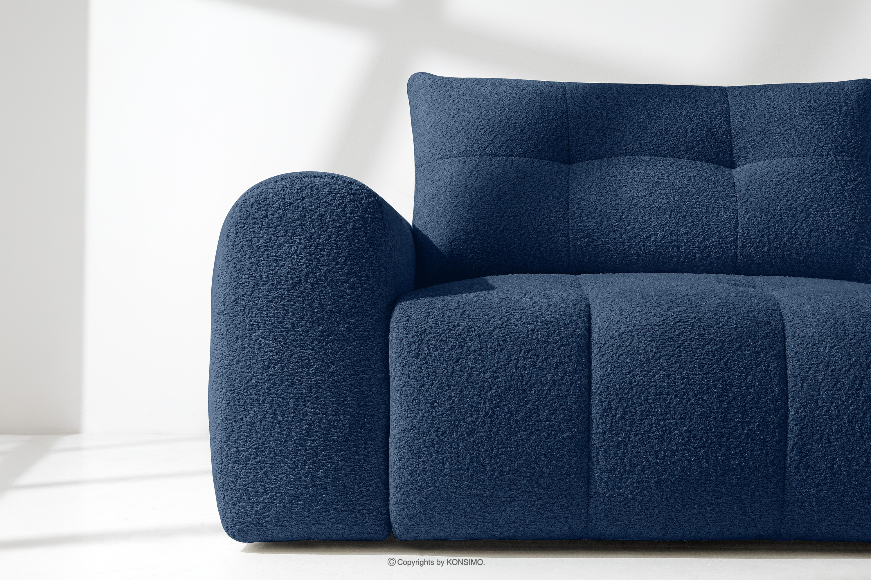 Loungeset im Japandi-Stil Boucle dunkelblau verbindet die strenge Eleganz des japanischen Designs mit dem gemütlichen Minimalismus skandinavischer Innenräume. Die Kollektion RAVIA ist mit einem einzigartigen Bouclé-Stoff bezogen, der nicht nur durch seine Struktur und Weichheit besticht, sondern den Möbeln auch einen luxuriösen Charakter verleiht. Sie bringt Ruhe und Harmonie in jeden Raum.