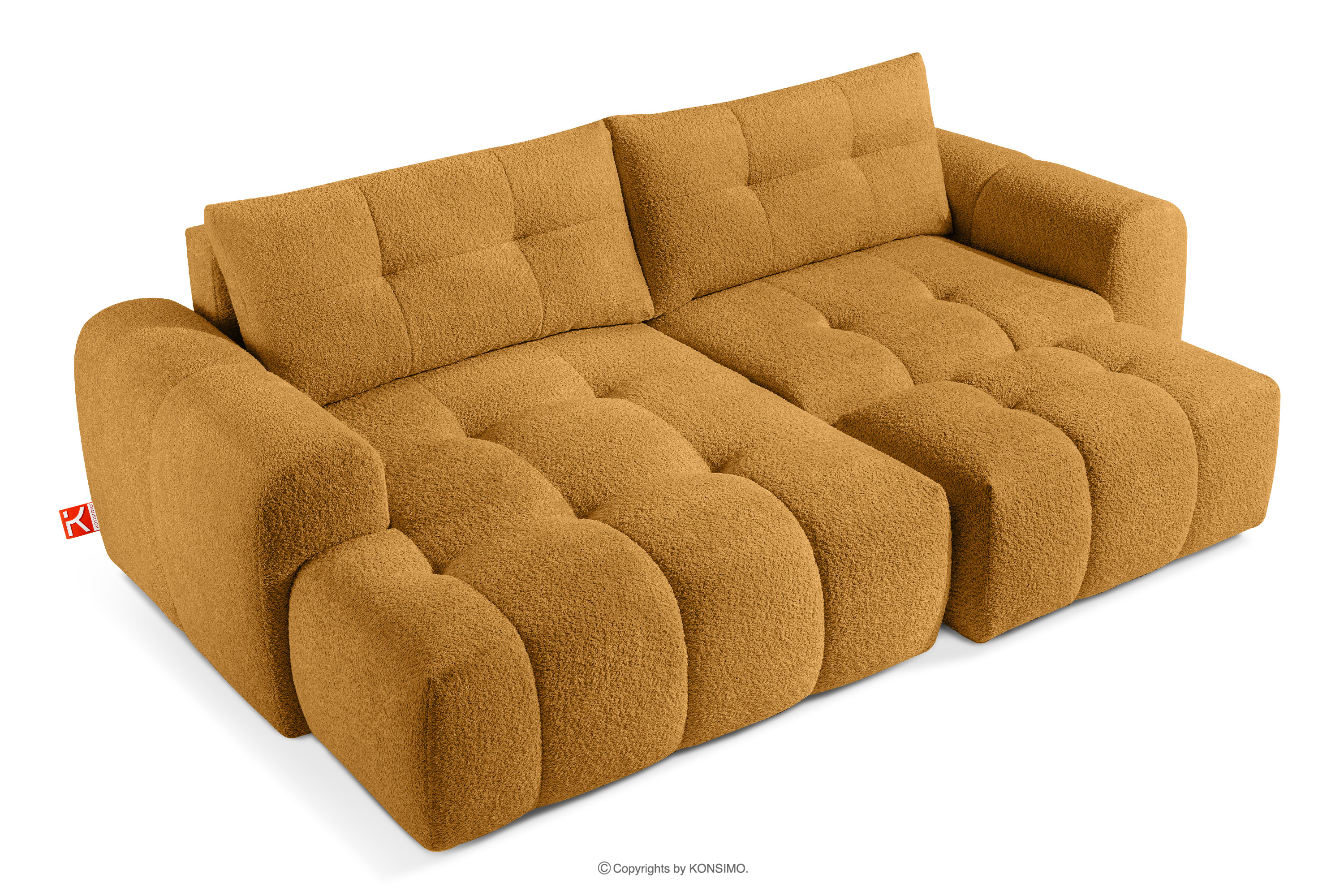 Die subtilen, unregelmäßigen Bouclé-Webungen bilden auf der Oberfläche der Möbel zarte Muster, die das Licht wunderschön reflektieren, die Farbtiefe betonen und den Möbeln ein einzigartiges, handwerkliches Aussehen verleihen. Solide Nähte und Liebe zum Detail, die für Premium-Qualität typisch sind, zeigen sich in jedem Element, von den sorgfältig verarbeiteten Kanten bis hin zu den perfekt passenden Kissen.