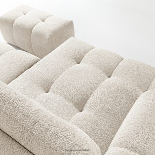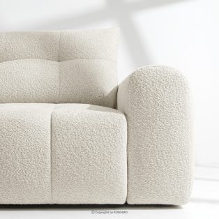 Loungeset für das Wohnzimmer im Japandi-Stil Boucle weiß verbindet die strenge Eleganz des japanischen Designs mit dem gemütlichen Minimalismus skandinavischer Innenräume. Die Kollektion RAVIA ist mit einem einzigartigen Bouclé-Stoff bezogen, der nicht nur durch seine Struktur und Weichheit besticht, sondern den Möbeln auch einen luxuriösen Charakter verleiht. Sie bringt Ruhe und Harmonie in jeden Raum.