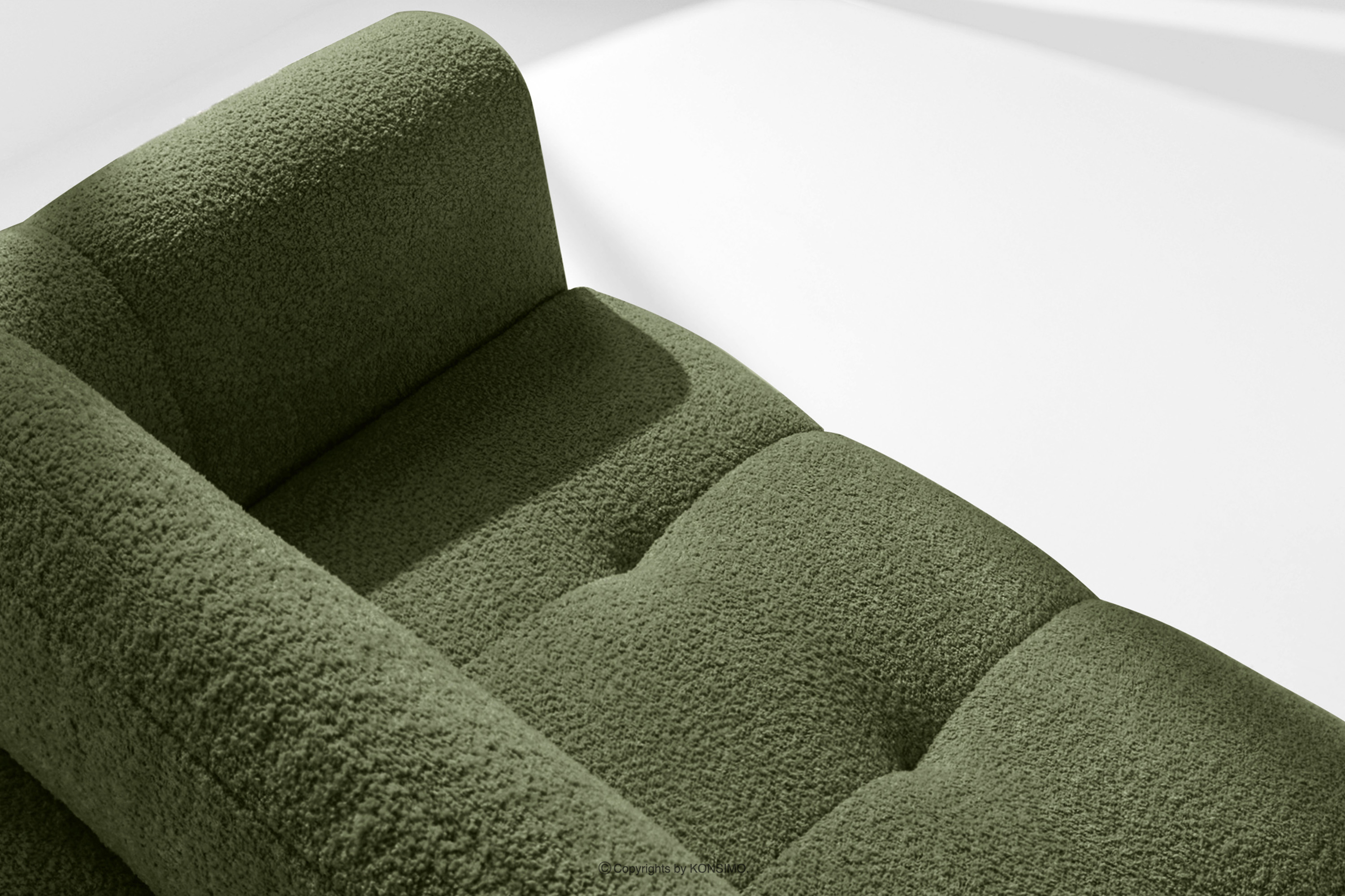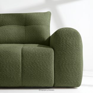 Wohnzimmergarnitur im Japandi-Stil Boucle oliv verbindet die strenge Eleganz des japanischen Designs mit dem gemütlichen Minimalismus skandinavischer Innenräume. Die Kollektion RAVIA ist mit einem einzigartigen Bouclé-Stoff bezogen, der nicht nur durch seine Struktur und Weichheit besticht, sondern den Möbeln auch einen luxuriösen Charakter verleiht. Sie bringt Ruhe und Harmonie in jeden Raum.