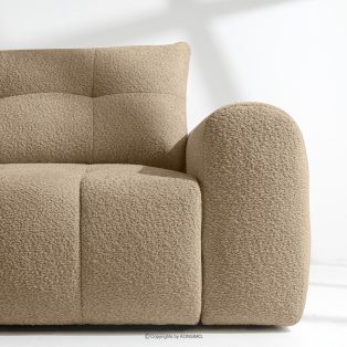 Loungeset für das Wohnzimmer im Japandi-Stil Boucle beige verbindet die strenge Eleganz des japanischen Designs mit dem gemütlichen Minimalismus skandinavischer Innenräume. Die Kollektion RAVIA ist mit einem einzigartigen Bouclé-Stoff bezogen, der nicht nur durch seine Struktur und Weichheit besticht, sondern den Möbeln auch einen luxuriösen Charakter verleiht. Sie bringt Ruhe und Harmonie in jeden Raum.