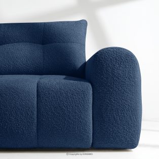 Wohnzimmergarnitur im Japandi-Stil Boucle marineblau verbindet die strenge Eleganz des japanischen Designs mit dem gemütlichen Minimalismus skandinavischer Innenräume. Die Kollektion RAVIA ist mit einem einzigartigen Bouclé-Stoff bezogen, der nicht nur durch seine Struktur und Weichheit besticht, sondern den Möbeln auch einen luxuriösen Charakter verleiht. Sie bringt Ruhe und Harmonie in jeden Raum.