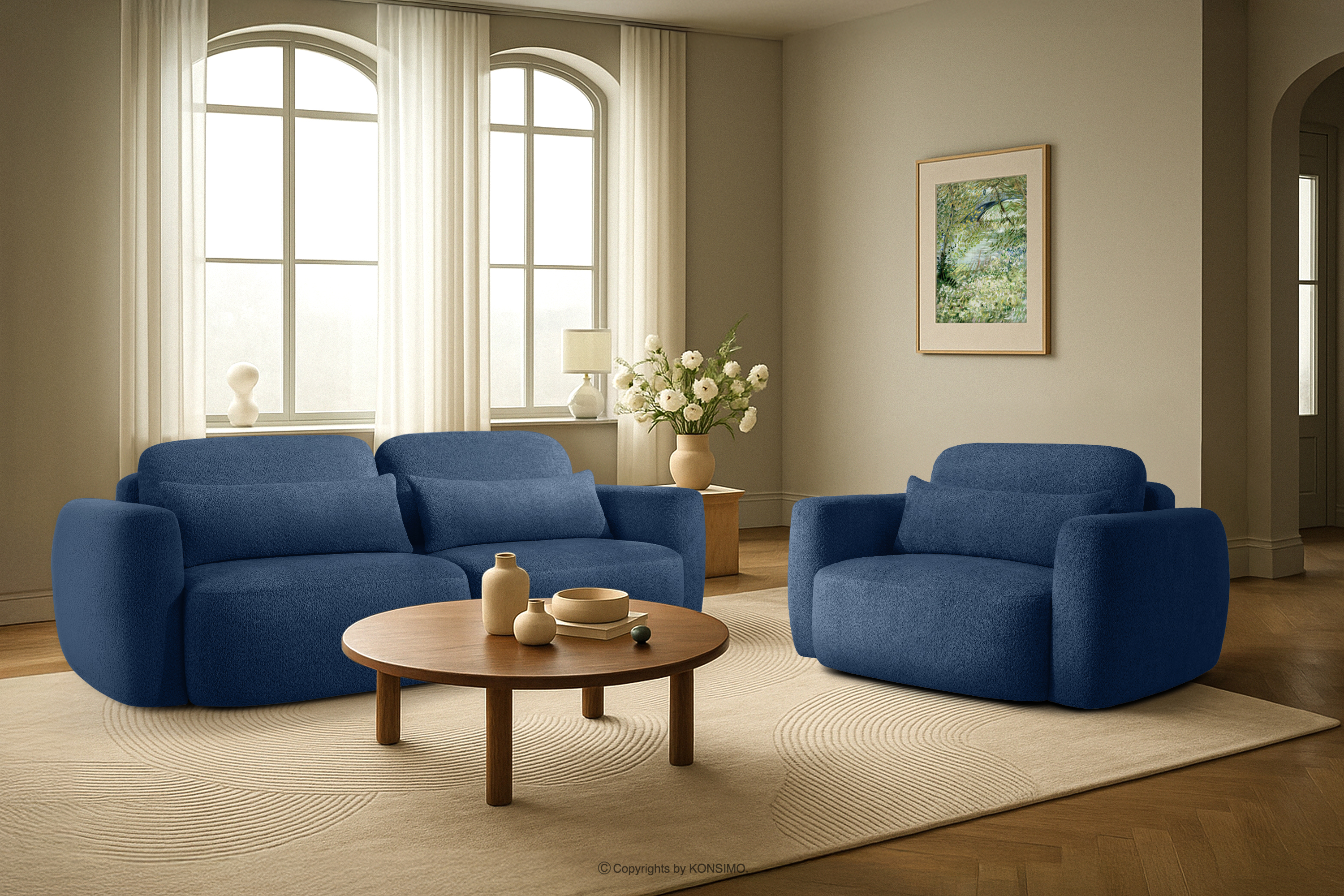 ELOSA Mehr aus der Kollektion Sessel im japanischen Stil aus dunkelblauem Bouclé-Stoff- Farbe dunkelblau