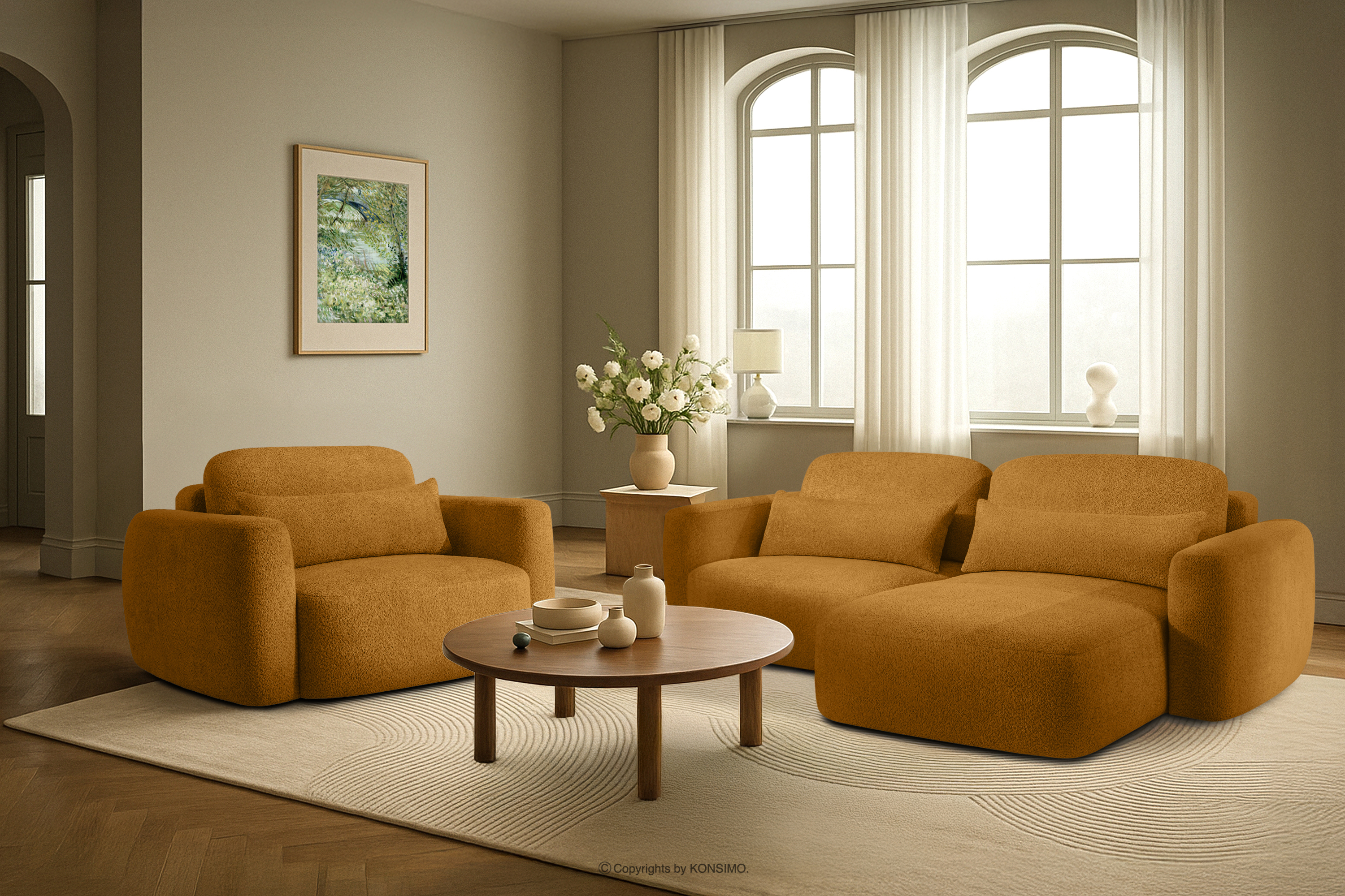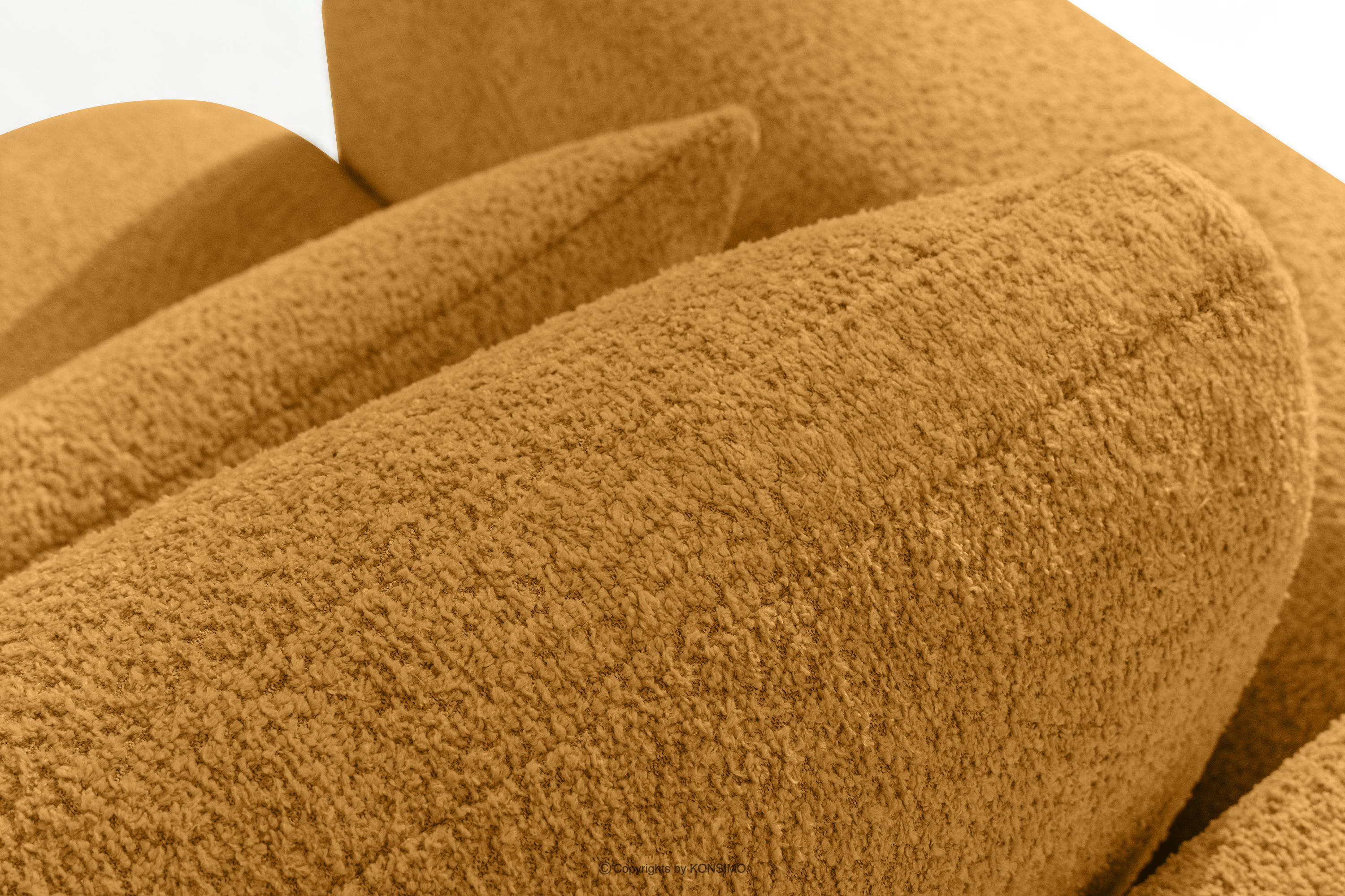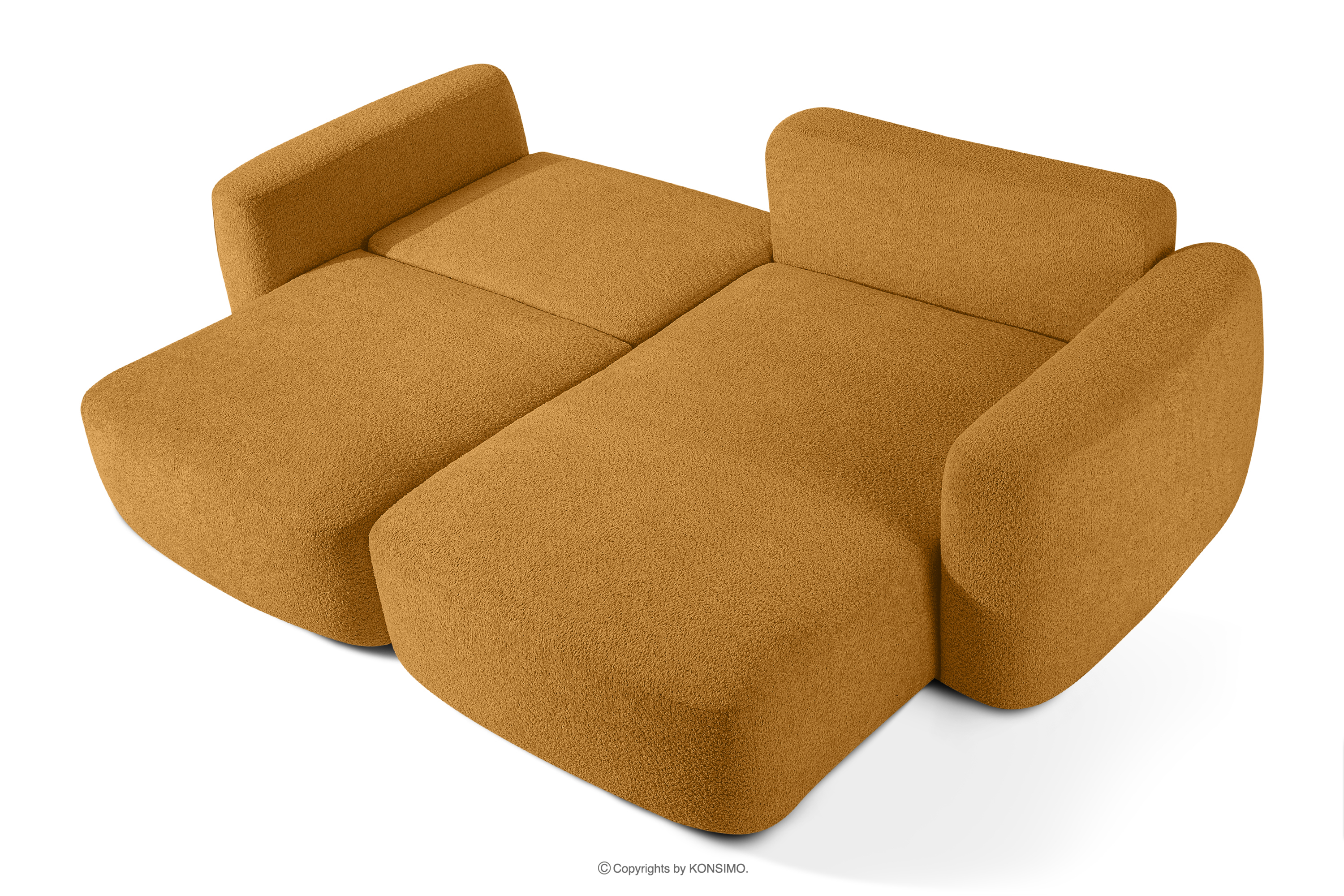 ELOSA Ecksofa im japanischen Stil aus Bouclé-Stoff, rechts, honigfarben