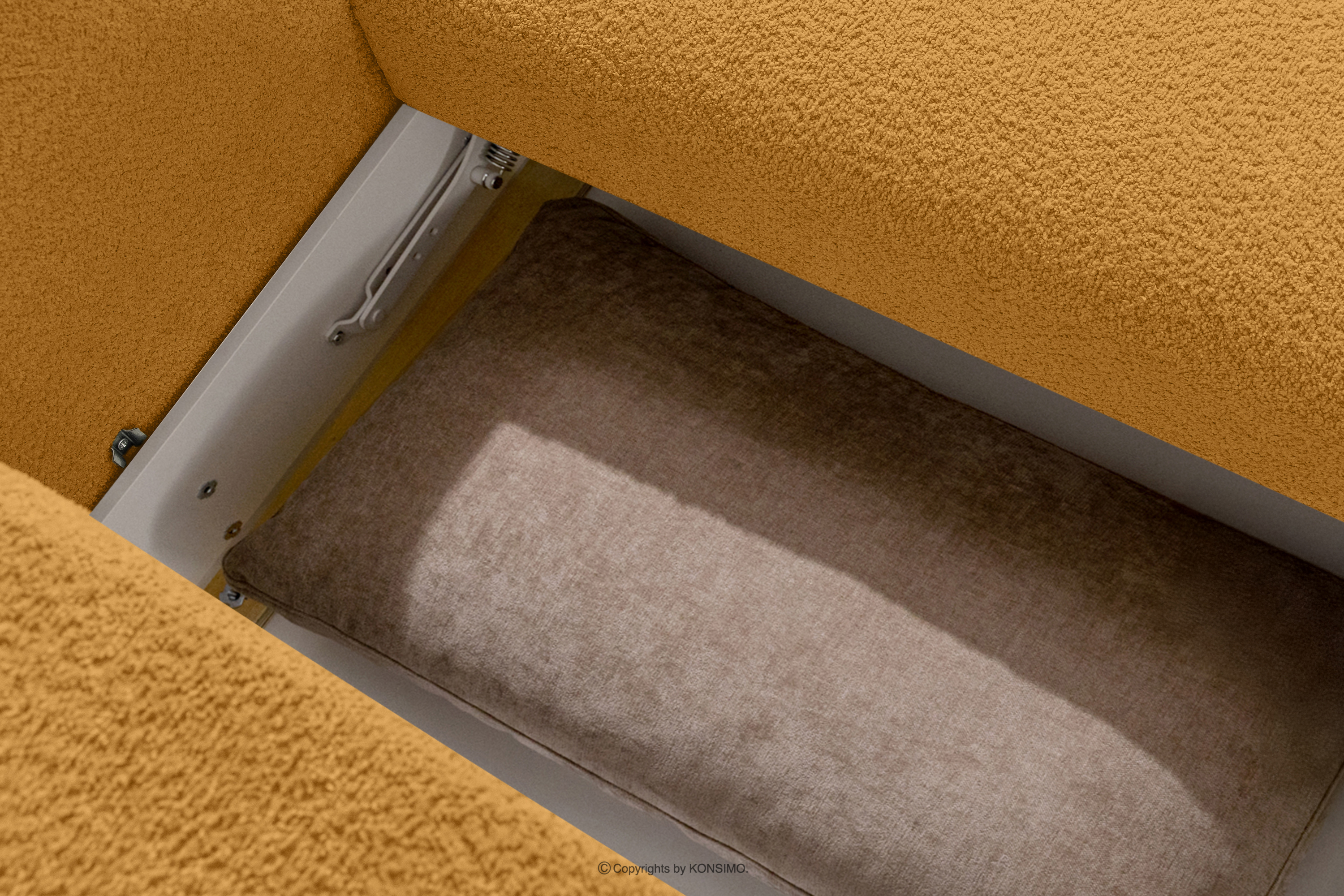 für das Produkt Ecksofa im japanischen Stil aus Bouclé-Stoff, rechts, honigfarben