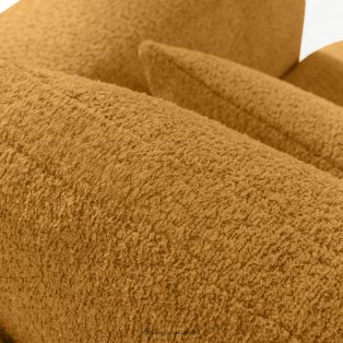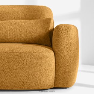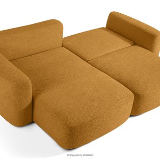 Ecksofa im japanischen Stil aus Bouclé-Stoff, links, honigfarben revolutioniert das Konzept der Erholung. Das Herzstück ist ein innovativer Sitz, dessen einzigartige, gewölbte Halbmondform nicht nur ein Blickfang ist, sondern vor allem unvergleichlichen Komfort bietet. Dank der Verwendung von B-Wellenunterfederungen und hochwertigem HR30-Schaumstoff ist der Sitz mittelhart und gleichzeitig äußerst elastisch und weich.