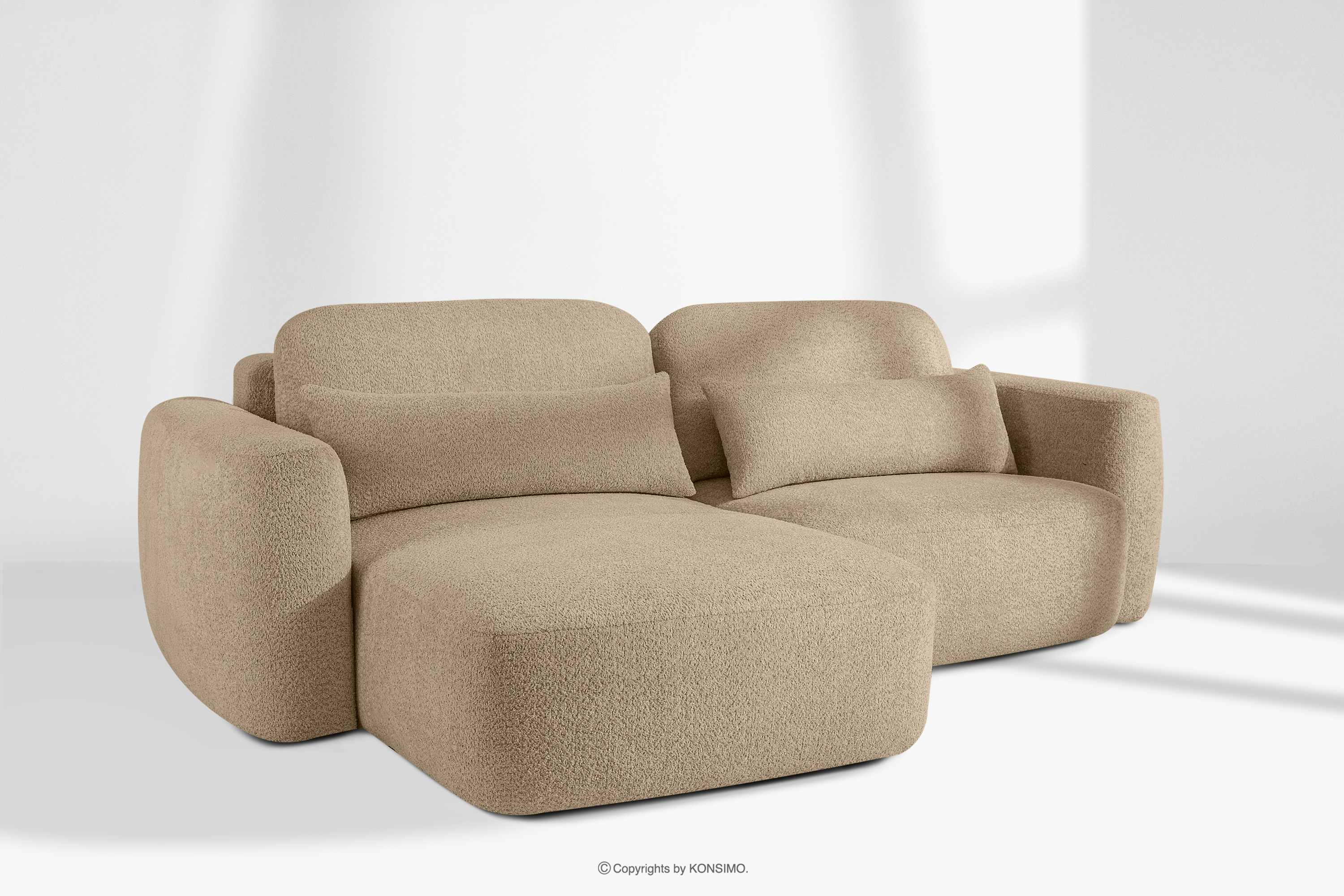 Japandi-Ecksofa aus Bouclé-Stoff, links, beige