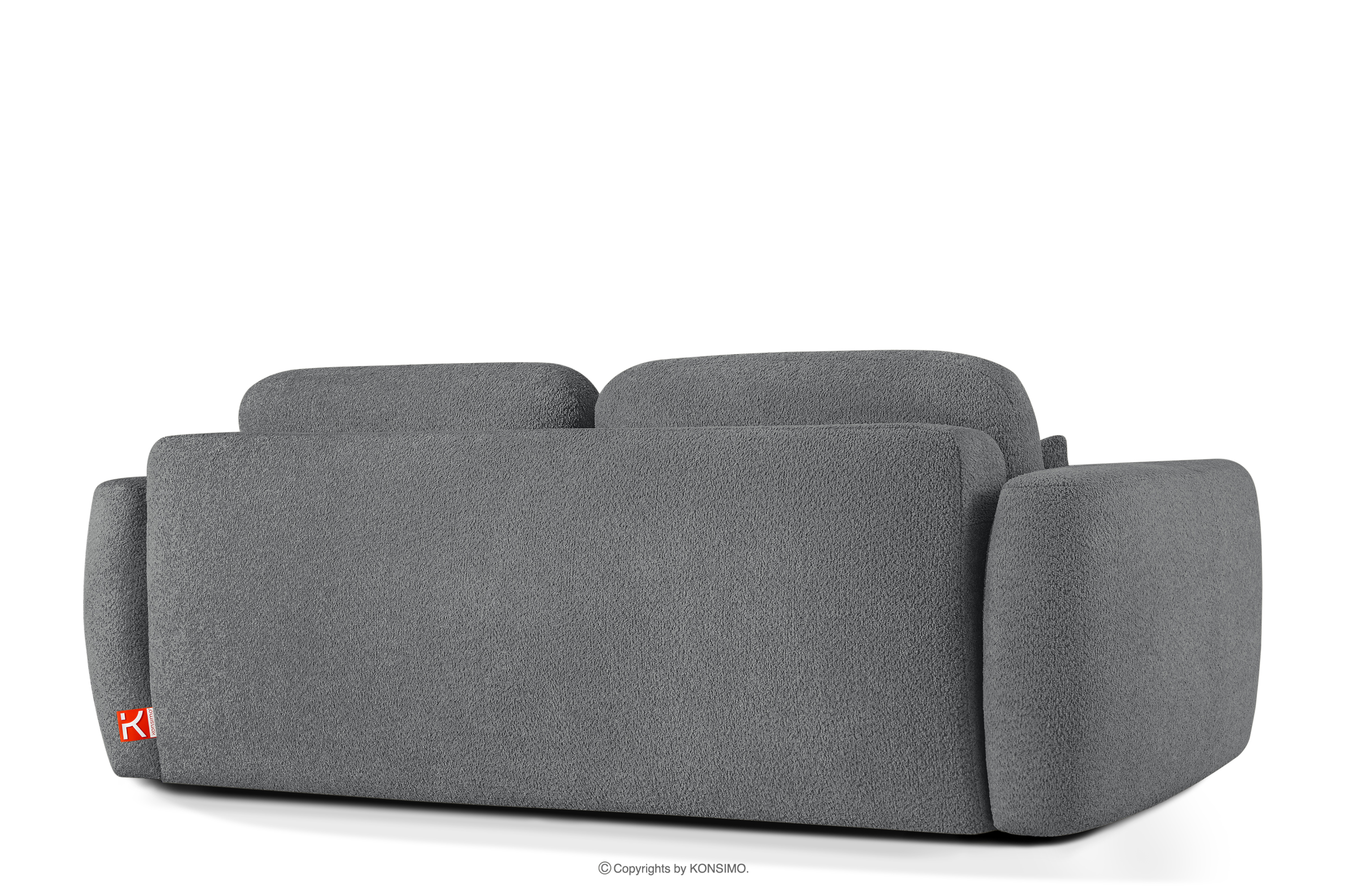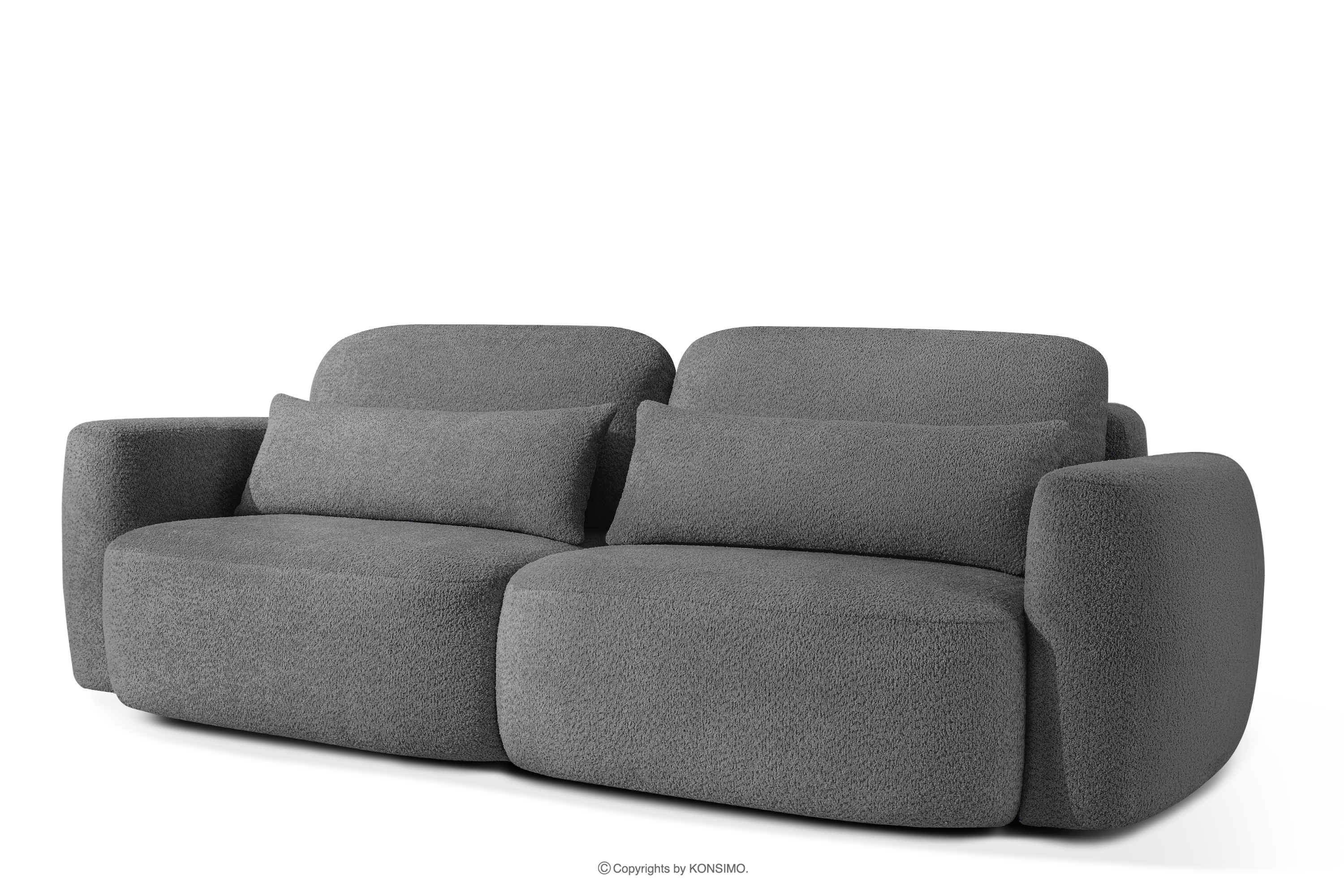 Sofa und Sessel im japanischen Stil aus dunkelgrauem Bouclé-Stoff revolutioniert das Konzept der Erholung. Das Herzstück ist ein innovativer Sitz, dessen einzigartige, gewölbte Halbmondform nicht nur ein Blickfang ist, sondern vor allem unvergleichlichen Komfort bietet. Dank der Verwendung von B-Wellenunterfederungen und hochwertigem HR30-Schaumstoff ist der Sitz mittelhart und gleichzeitig äußerst elastisch und weich.