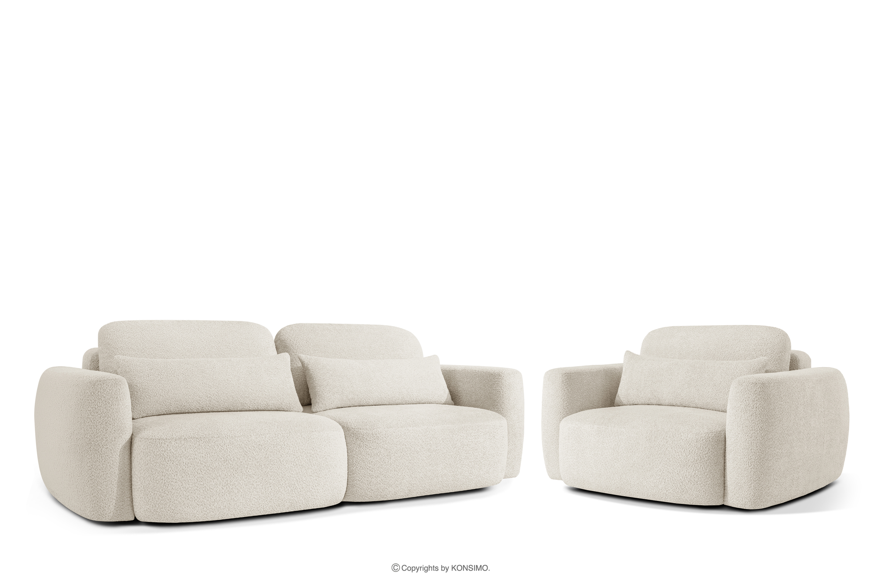 für das Produkt Sofa und Sessel im Japandi-Stil aus weißem Bouclé-Stoff