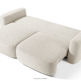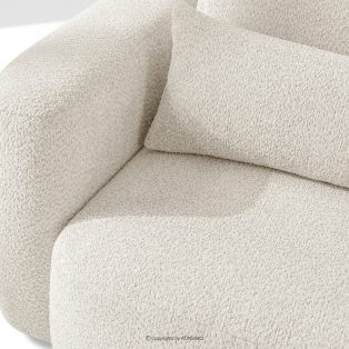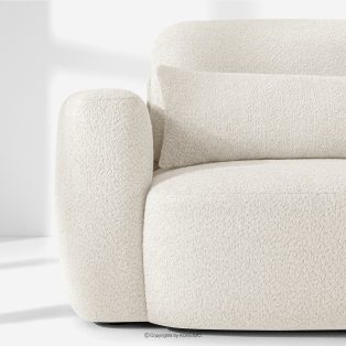 Sofa und Sessel im Japandi-Stil aus weißem Bouclé-Stoff revolutioniert das Konzept der Erholung. Das Herzstück ist ein innovativer Sitz, dessen einzigartige, gewölbte Halbmondform nicht nur ein Blickfang ist, sondern vor allem unvergleichlichen Komfort bietet. Dank der Verwendung von B-Wellenunterfederungen und hochwertigem HR30-Schaumstoff ist der Sitz mittelhart und gleichzeitig äußerst elastisch und weich.