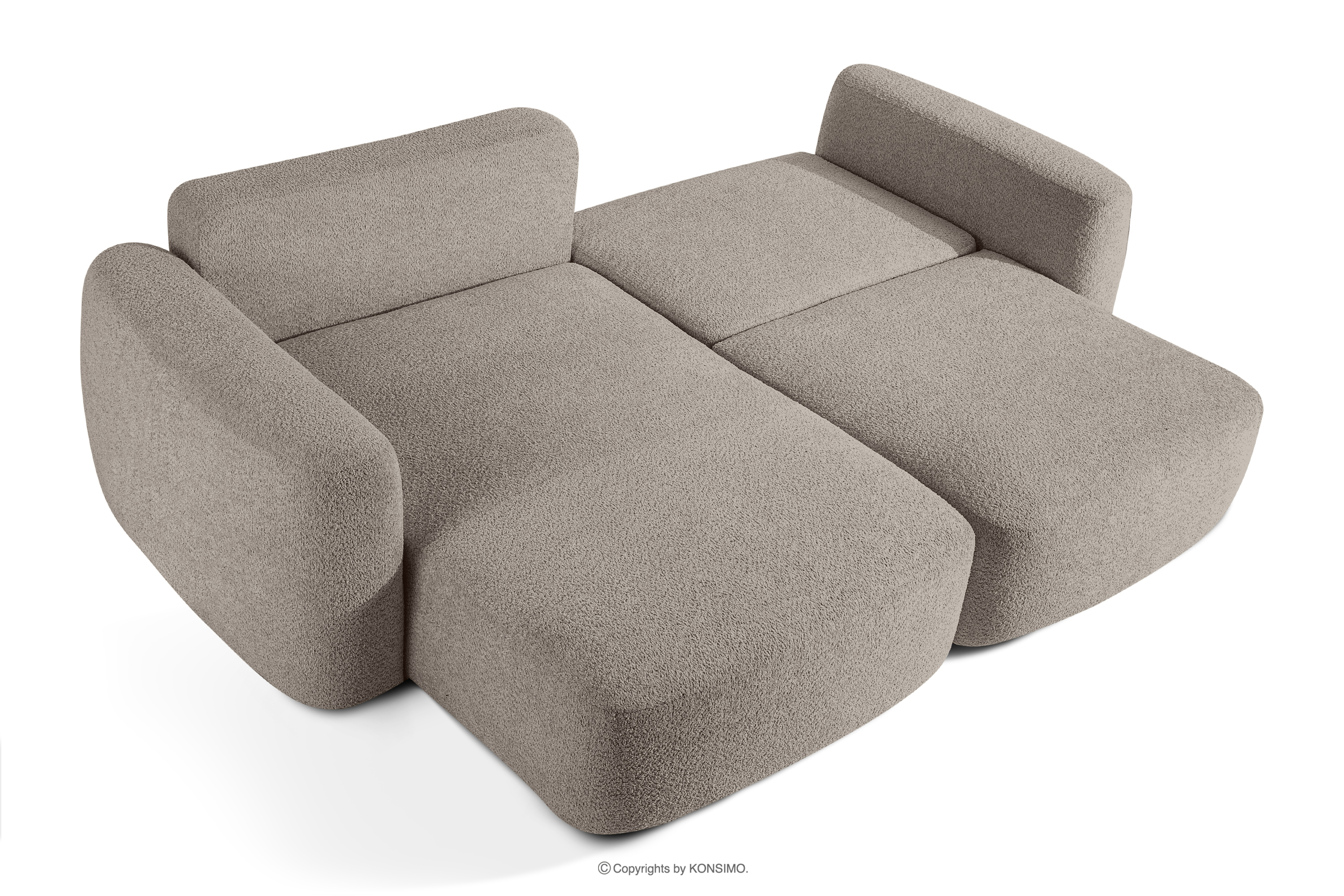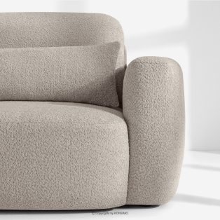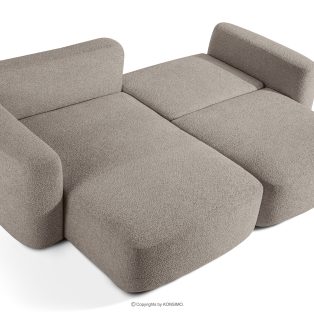 Linkes Ecksofa und Sessel im Japandi-Stil Bouclé grau revolutioniert das Konzept der Erholung. Das Herzstück ist ein innovativer Sitz, dessen einzigartige, gewölbte Halbmondform nicht nur ein Blickfang ist, sondern vor allem unvergleichlichen Komfort bietet. Dank der Verwendung von B-Wellenunterfederungen und hochwertigem HR30-Schaumstoff ist der Sitz mittelhart und gleichzeitig äußerst elastisch und weich.