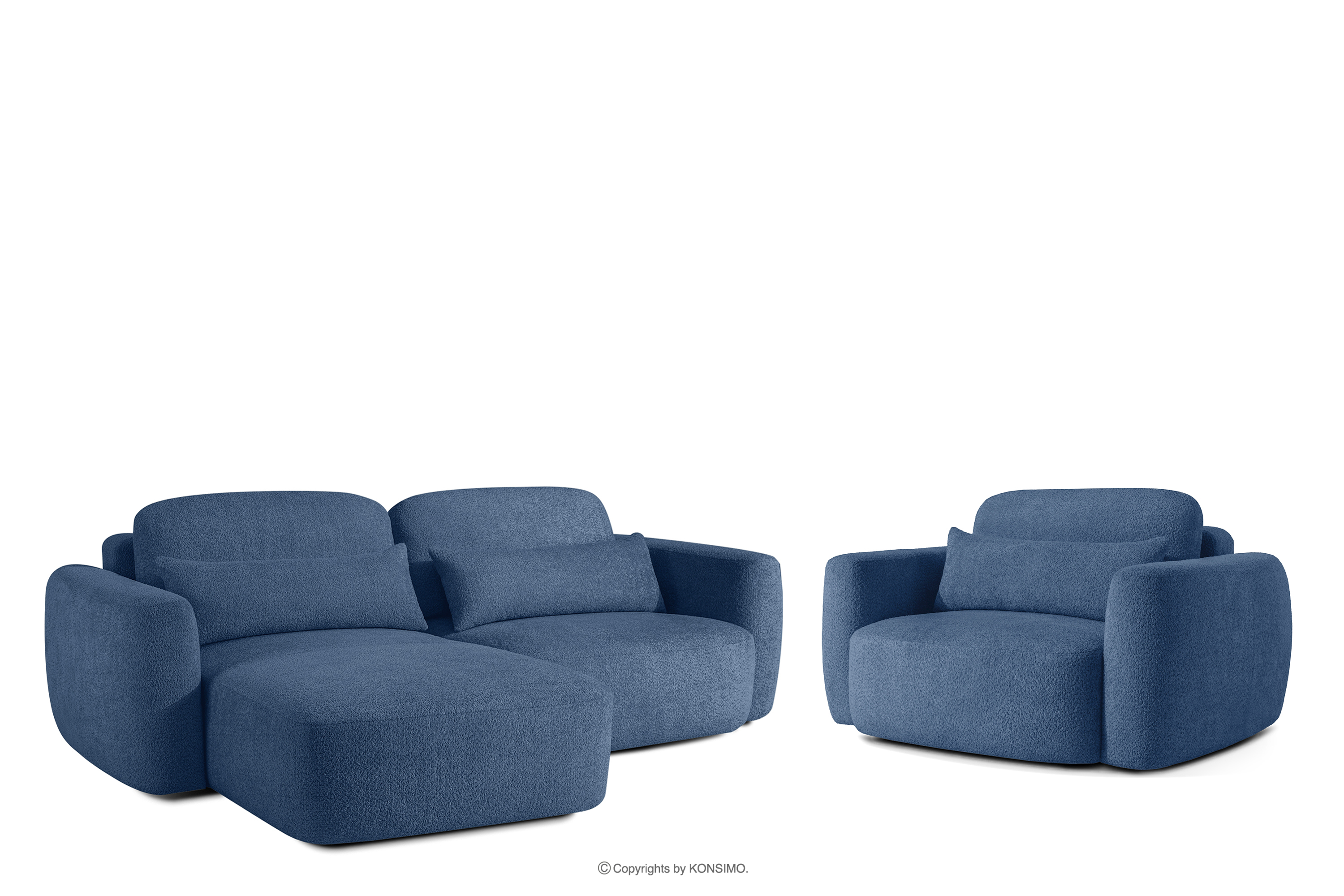 ELOSA Mehr aus der Kollektion Linkes Ecksofa und Sessel im Japandi-Stil Bouclé marineblau- Farbe marineblau