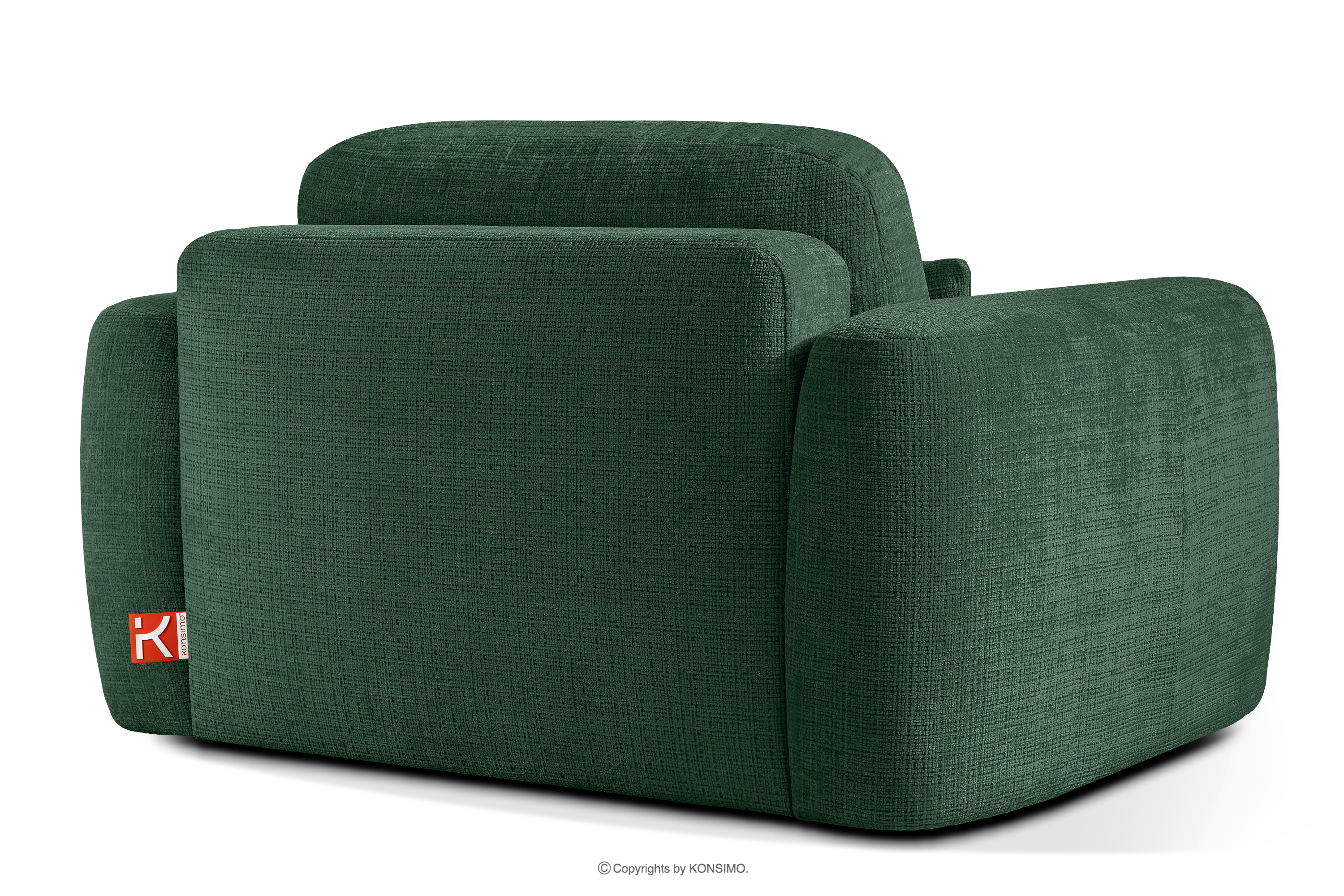 Sessel im japanischen Stil aus grünem Chenille-Stoff revolutioniert das Konzept der Erholung. Das Herzstück ist ein innovativer Sitz, dessen einzigartige, gewölbte Halbmondform nicht nur ein Blickfang ist, sondern vor allem unvergleichlichen Komfort bietet. Dank der Verwendung von B-Wellenunterfederungen und hochwertigem HR30-Schaumstoff ist der Sitz mittelhart und gleichzeitig äußerst elastisch und weich.