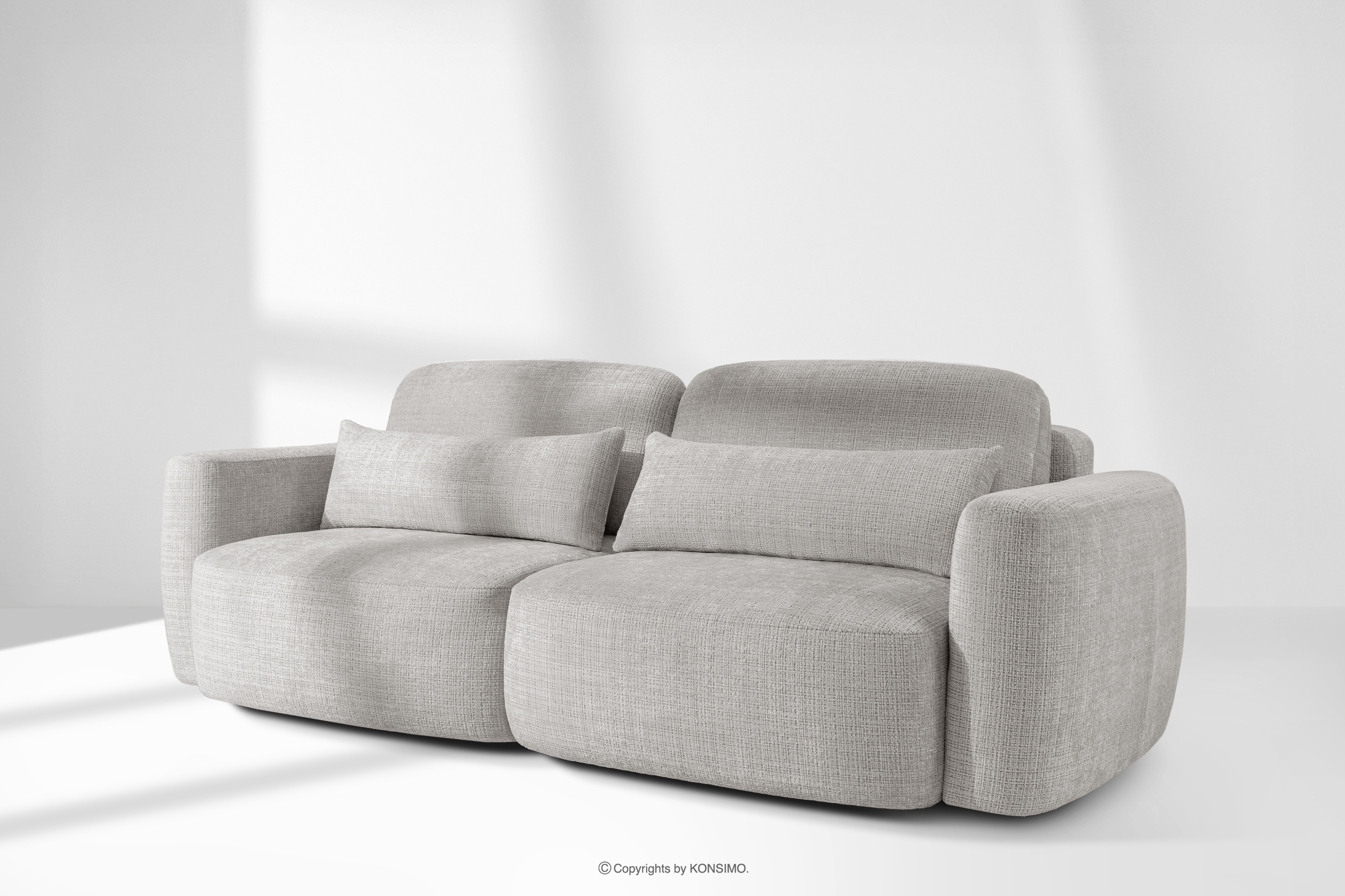 ELOSA Sofa 3 Japandi aus hellgrauem Chenille-Stoff