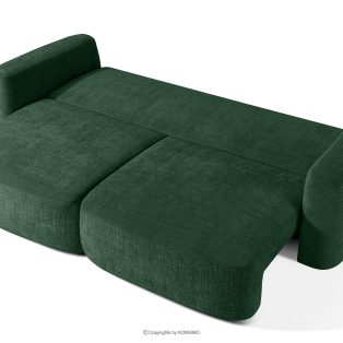 Dreisitzer-Sofa im japanischen Stil aus grünem Chenille-Stoff revolutioniert das Konzept der Erholung. Das Herzstück ist ein innovativer Sitz, dessen einzigartige, gewölbte Halbmondform nicht nur ein Blickfang ist, sondern vor allem unvergleichlichen Komfort bietet. Dank der Verwendung von B-Wellenunterfederungen und hochwertigem HR30-Schaumstoff ist der Sitz mittelhart und gleichzeitig äußerst elastisch und weich.