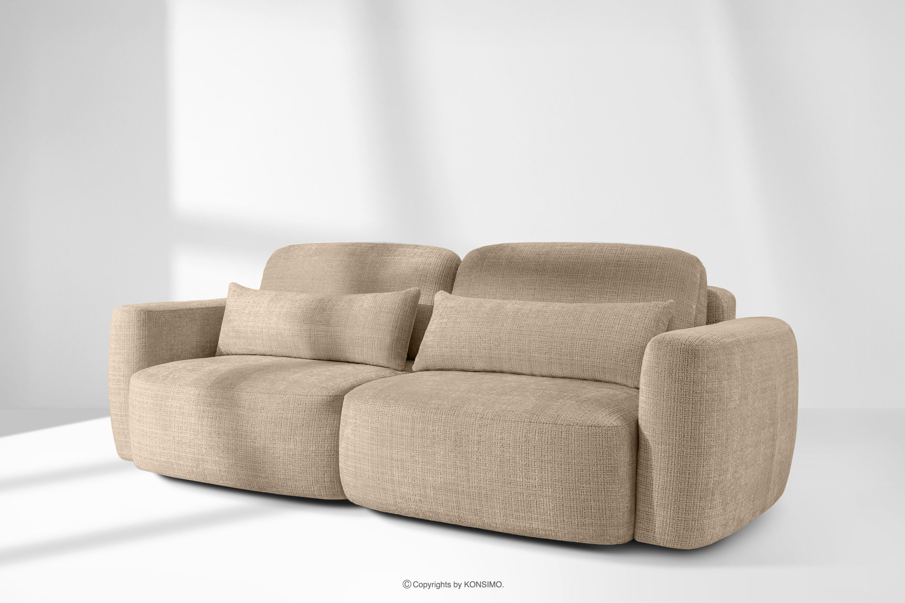 ELOSA Sofa 3 Japandi aus beigem Chenille-Stoff