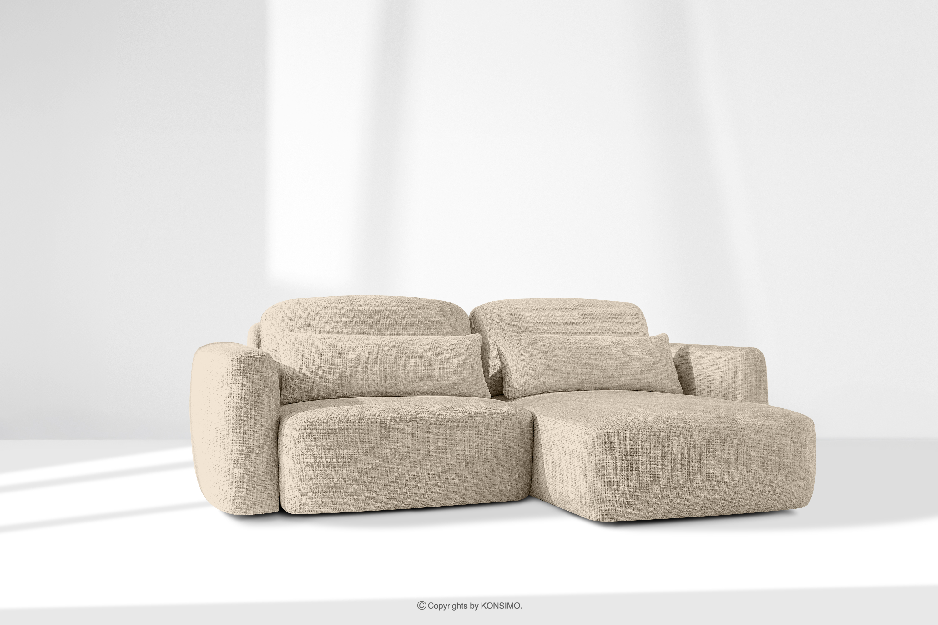 Japandi-Ecksofa aus Chenille-Stoff rechts cremefarben