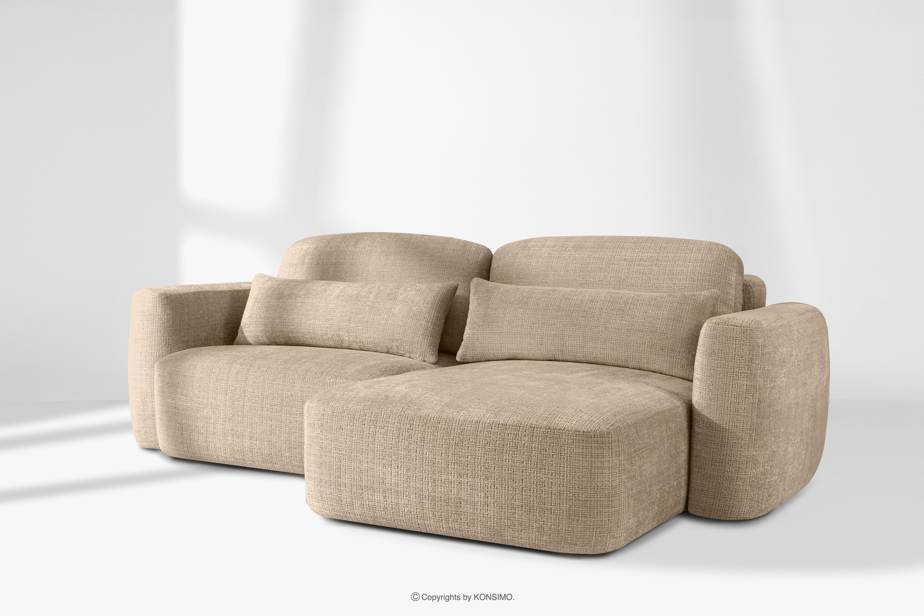 ELOSA Japandi-Ecksofa aus Chenille-Stoff rechts beige