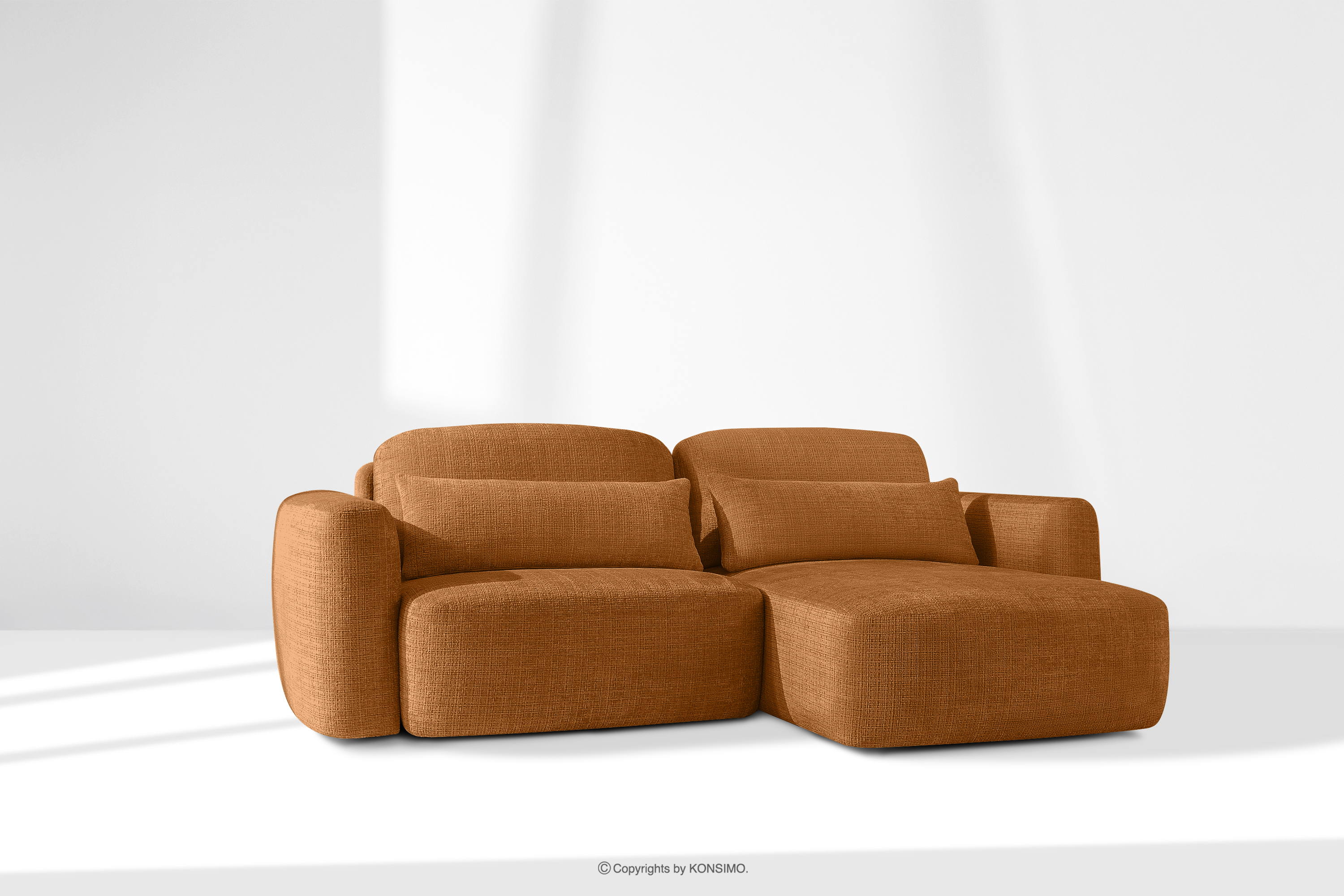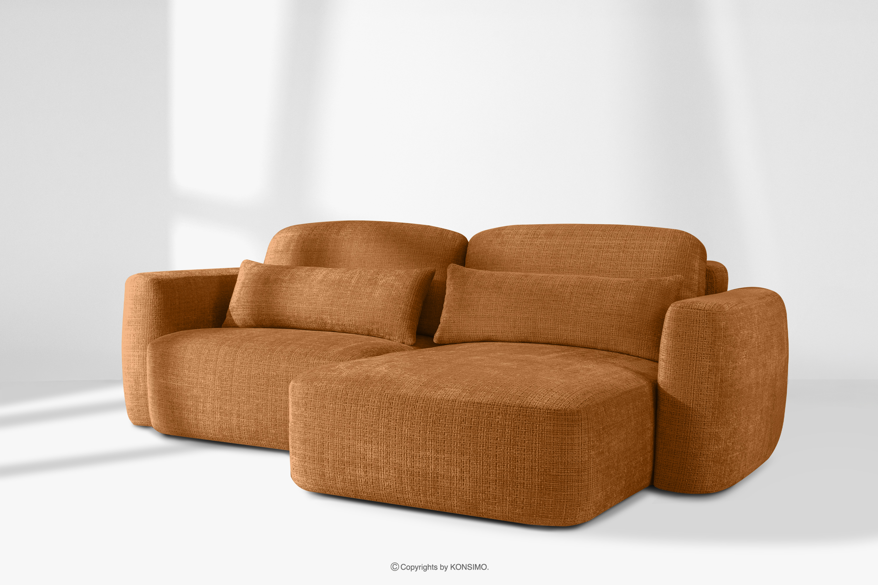Ecksofa im japanischen Stil aus Chenille-Stoff rechts rot revolutioniert das Konzept der Erholung. Das Herzstück ist ein innovativer Sitz, dessen einzigartige, gewölbte Halbmondform nicht nur ein Blickfang ist, sondern vor allem unvergleichlichen Komfort bietet. Dank der Verwendung von B-Wellenunterfederungen und hochwertigem HR30-Schaumstoff ist der Sitz mittelhart und gleichzeitig äußerst elastisch und weich.