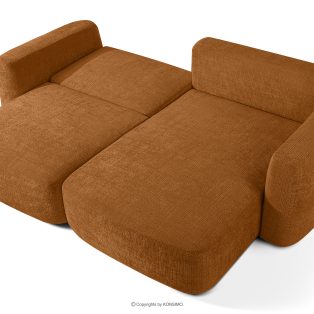 Das Ecksofa wurde für maximale Funktionalität und Ästhetik konzipiert, die auch die anspruchsvollsten Menschen zu schätzen wissen. Die Armlehnen sind mit dickem Formschaum gepolstert, extrem weich und laden zum Entspannen ein. Die Rückenkissen sind mit einer Mischung aus 70 % Silikonkügelchen und 30 % Schaumstoffgranulat gefüllt, wodurch sie ihre Form perfekt beibehalten und sich dem Körper anpassen. Die beiden Lendenkissen, die zu 100 % mit Silikonkügelchen gefüllt sind, sind der Schlüssel zu individuellem Komfort. Ihre hohe und dicke Form drückt die Lendenwirbelsäule effektiv nach außen und stützt den Rücken bis auf Höhe der Schulterblätter. Dank der Doppelnutzung dieser Kissen kann die Sitztiefe verändert werden, so dass man leicht vom Sitzen in eine halb liegende Position wechseln kann, ideal zum Lesen oder Filme schauen. Die perfekt ausgearbeitete Form des Möbels, d.h. die gepolsterte Rückenlehne und die soliden Nähte, ermöglichen es, das Ecksofa sowohl an einer Wand als auch als freistehendes Element in der Einrichtung zu platzieren.