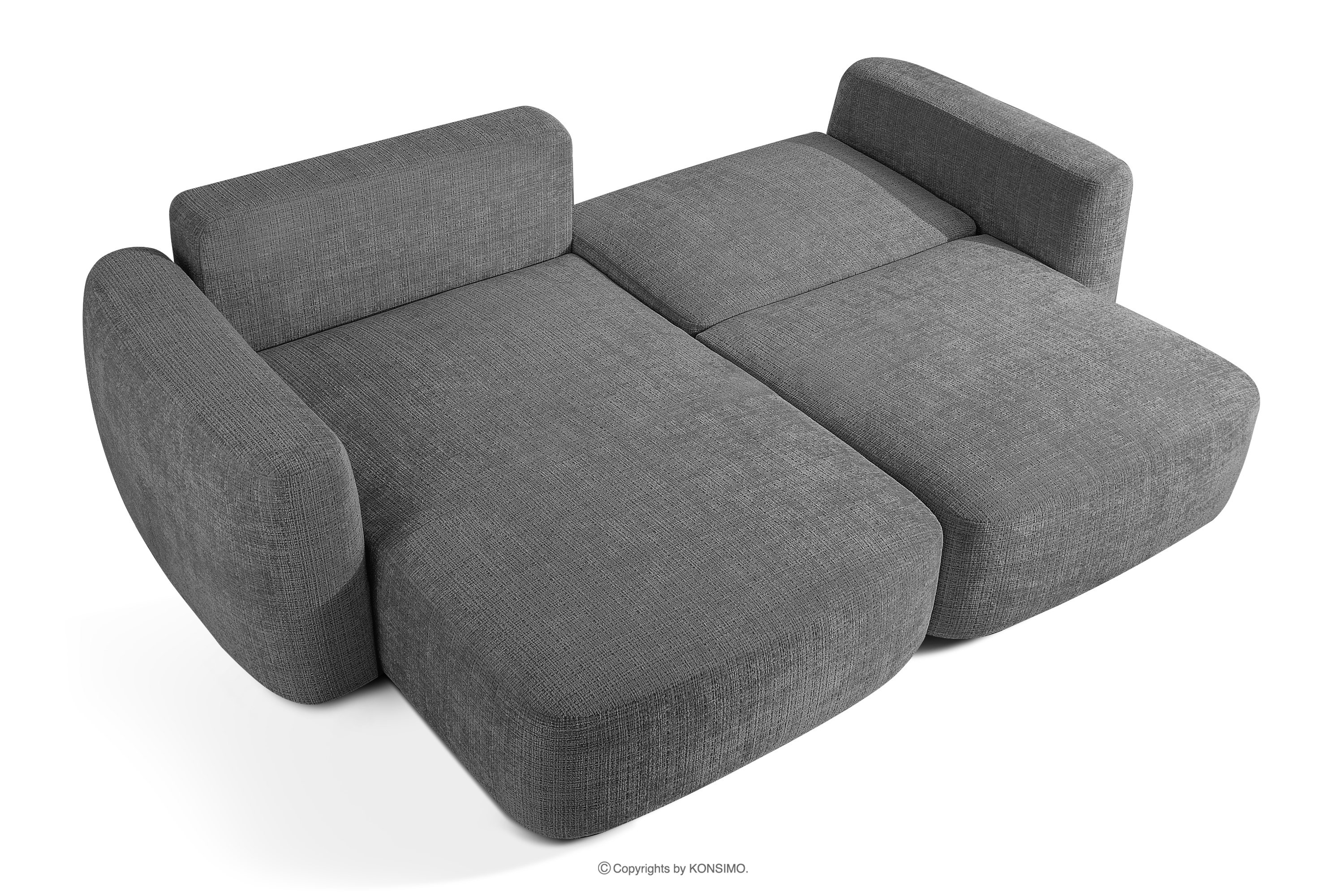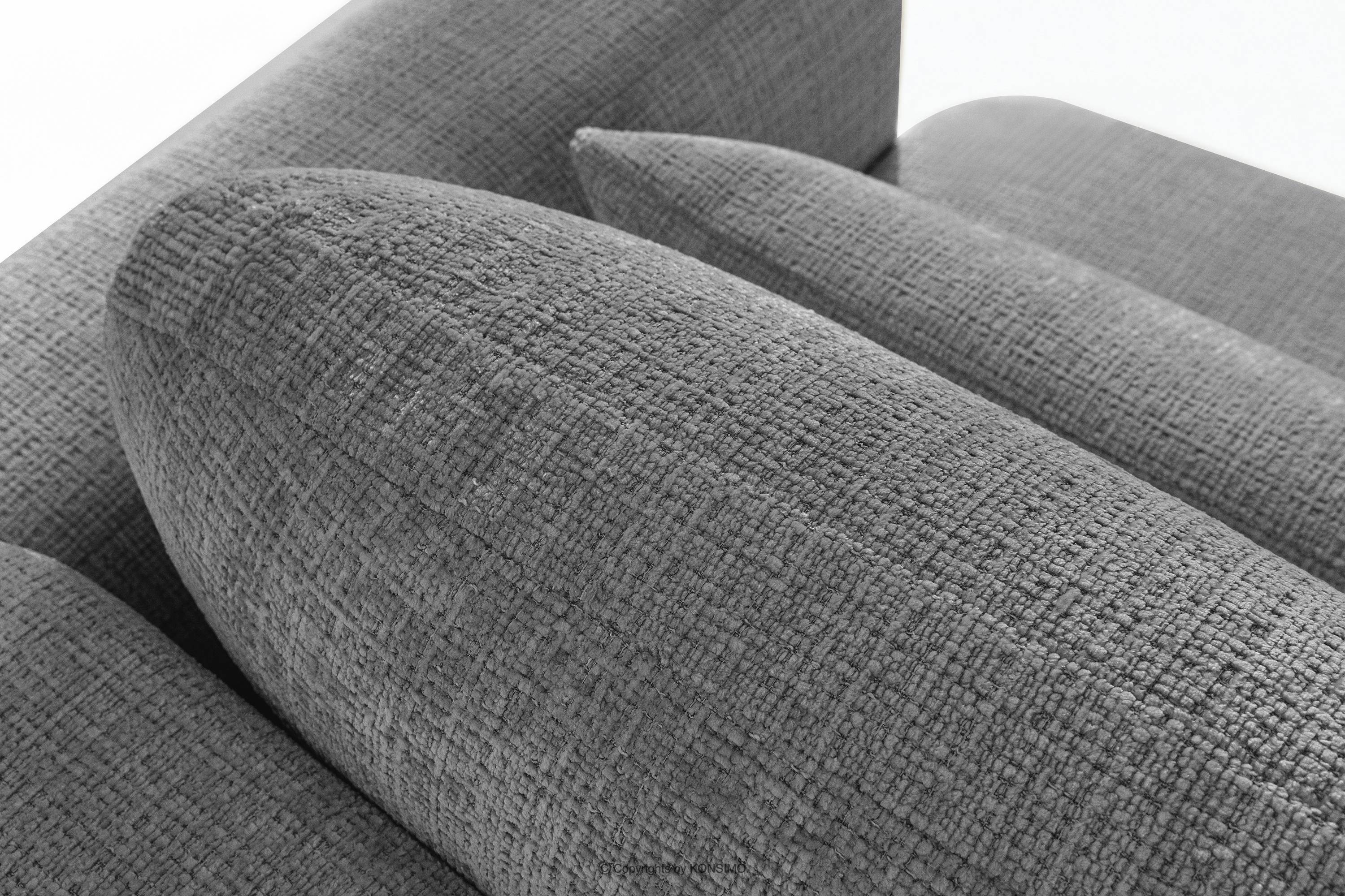 Ecksofa im Japandi-Stil aus Chenille-Stoff links dunkelgrau revolutioniert das Konzept der Erholung. Das Herzstück ist ein innovativer Sitz, dessen einzigartige, gewölbte Halbmondform nicht nur ein Blickfang ist, sondern vor allem unvergleichlichen Komfort bietet. Dank der Verwendung von B-Wellenunterfederungen und hochwertigem HR30-Schaumstoff ist der Sitz mittelhart und gleichzeitig äußerst elastisch und weich.