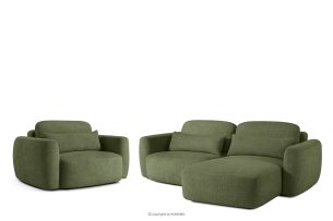 Die gesamte Kollektion, bestehend aus Sofas, Ecksofas und Sesseln, ist der Inbegriff von Luxus und modernem Design. Der Stoff, mit dem jedes Möbelstück bezogen ist, fühlt sich nicht nur äußerst angenehm an, sondern entspricht auch den neuesten Trends im Bereich der Innenarchitektur. Seine hohe Abriebfestigkeit garantiert, dass die Möbel auch bei intensiver Nutzung viele Jahre lang ihr makelloses Aussehen behalten. Die Kollektion zeugt von Liebe zum Detail – vom handgeformten Schaumstoff, der für einen einzigartigen Charakter und Formbeständigkeit sorgt, bis hin zu sorgfältig ausgewählten Kissenfüllungen, die unvergleichlichen Komfort garantieren. Ergonomie trifft hier auf Ästhetik und schafft Möbel, die nicht nur schön aussehen, sondern vor allem höchste Entspannungsqualität bieten. Diese Kollektion ist die perfekte Lösung für alle, die eine Kombination aus raffiniertem Stil, zuverlässiger Qualität und individuellem Komfort in ihrem Zuhause schätzen.