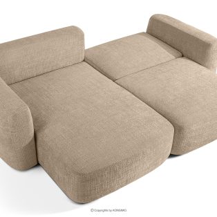 Ecksofa im Japandi-Stil aus Chenille-Stoff links beige revolutioniert das Konzept der Erholung. Das Herzstück ist ein innovativer Sitz, dessen einzigartige, gewölbte Halbmondform nicht nur ein Blickfang ist, sondern vor allem unvergleichlichen Komfort bietet. Dank der Verwendung von B-Wellenunterfederungen und hochwertigem HR30-Schaumstoff ist der Sitz mittelhart und gleichzeitig äußerst elastisch und weich.
