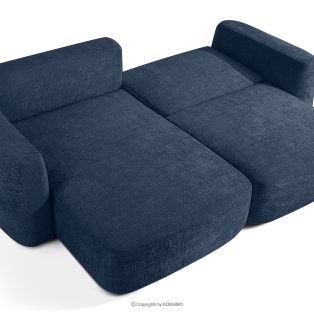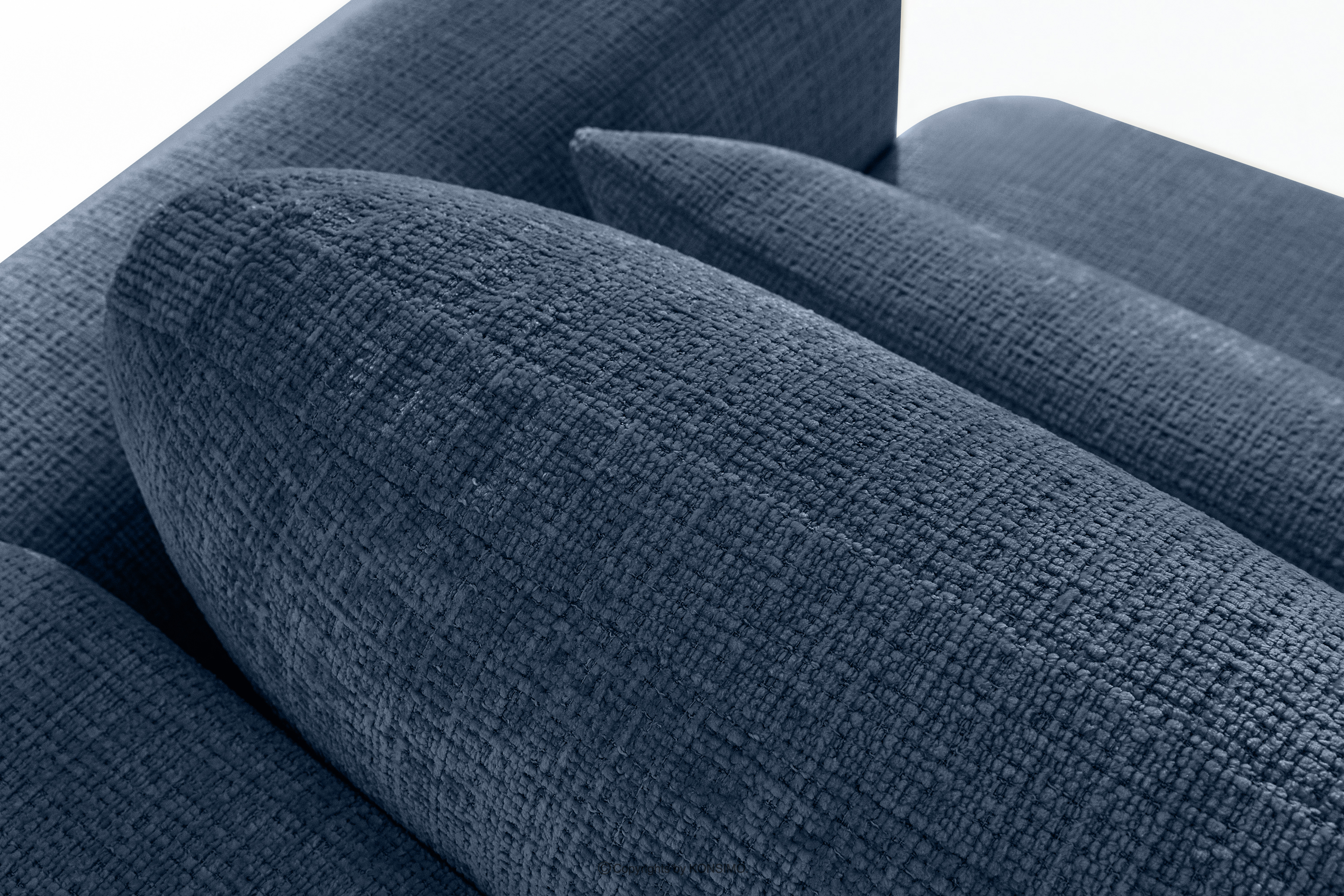 Ecksofa im japanischen Stil aus Chenille-Stoff links marineblau revolutioniert das Konzept der Erholung. Das Herzstück ist ein innovativer Sitz, dessen einzigartige, gewölbte Halbmondform nicht nur ein Blickfang ist, sondern vor allem unvergleichlichen Komfort bietet. Dank der Verwendung von B-Wellenunterfederungen und hochwertigem HR30-Schaumstoff ist der Sitz mittelhart und gleichzeitig äußerst elastisch und weich.