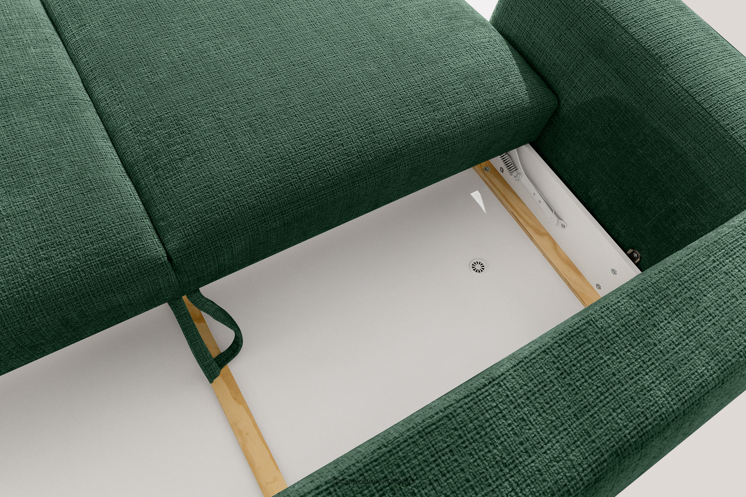 Diese Kombination garantiert eine perfekte Anpassung an die Körperform, minimiert Druckpunkte und sorgt für Entspannung auf höchstem Niveau. Darüber hinaus wird jedes Schaumstoff-Element präzise geformt und von Hand zugeschnitten – eine aufwendige Technologie mit Liebe zum Detail, die nicht nur die Einzigartigkeit jedes Möbelstücks unterstreicht, sondern auch garantiert, dass es über viele Jahre hinweg seine perfekte Form behält. Vergessen Sie Verformungen – dieses Möbelstück ist eine Investition in dauerhaften Komfort und Ästhetik. Die große Sitztiefe sorgt für eine beeindruckende Liegefläche und macht es zur idealen Lösung für unerwartete Gäste oder als zusätzlichen Platz zum Ausruhen in der Nacht. Wichtig ist, dass die Kissen so gestaltet sind, dass sie sowohl zum Entspannen als auch zum Schlafen verwendet werden können und einen komfortablen Schlaf garantieren.