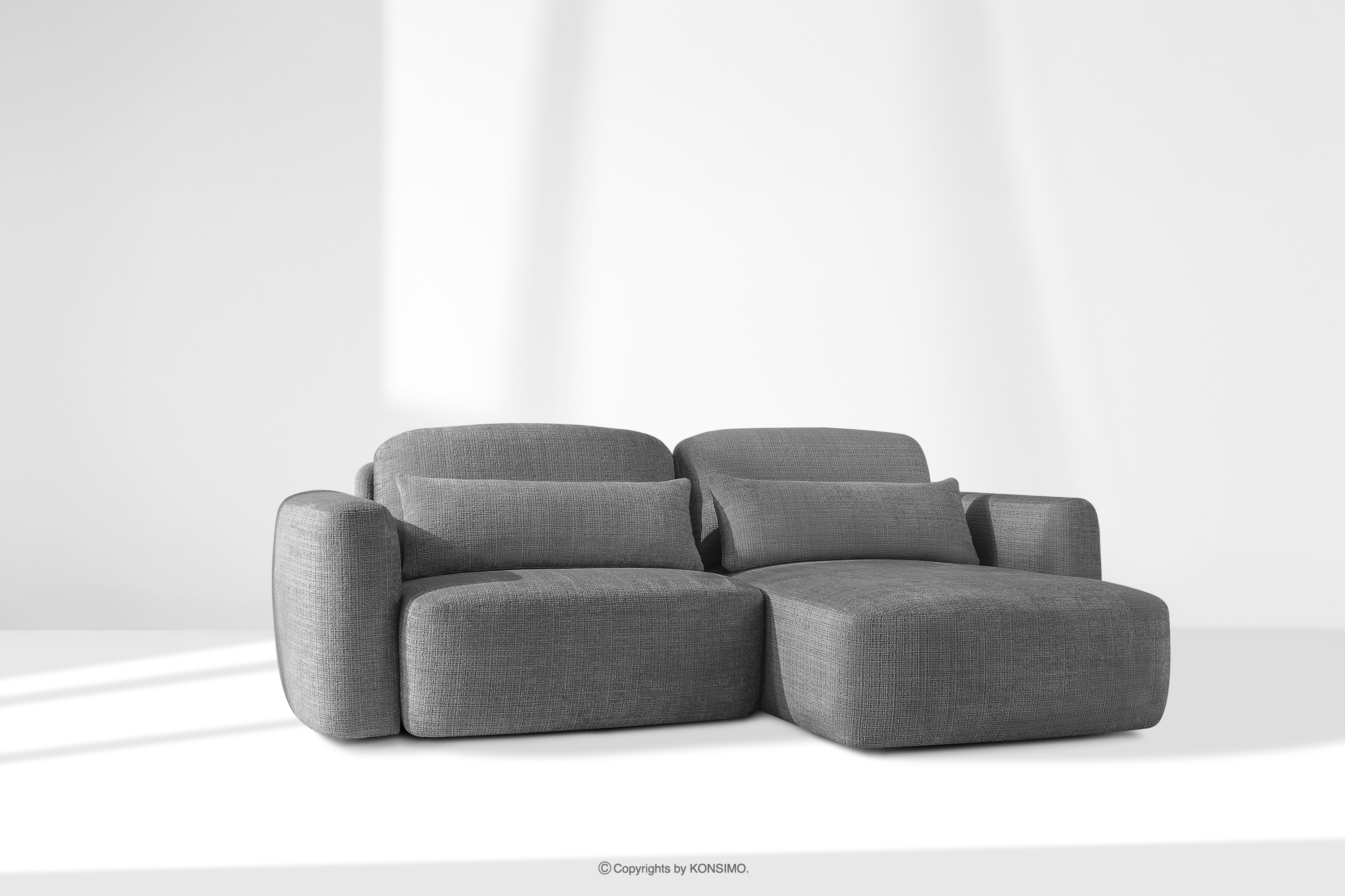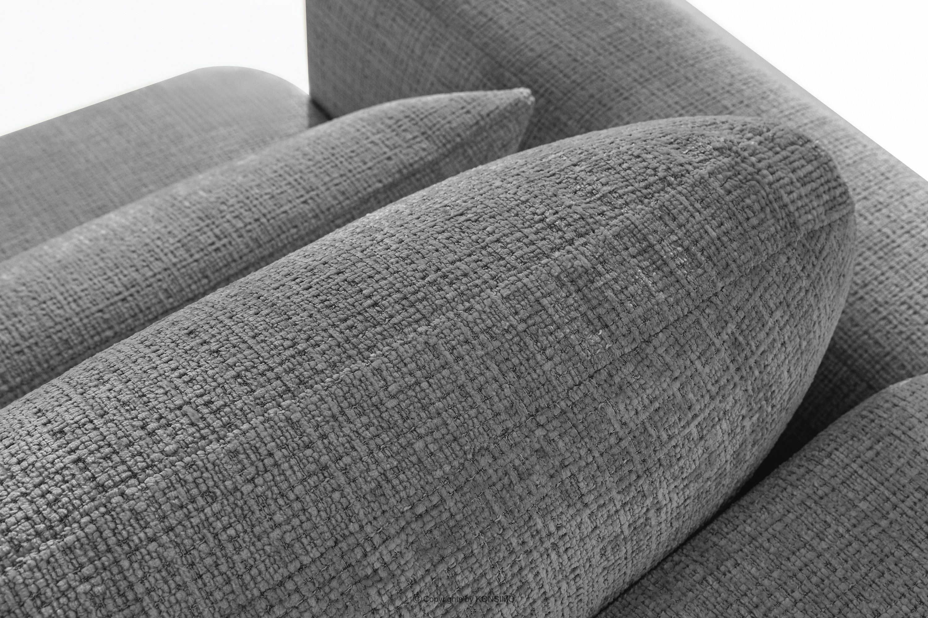 Rechte Ecksofa und Sessel im Japandi-Stil dunkelgrau Chenille revolutioniert das Konzept der Erholung. Das Herzstück ist ein innovativer Sitz, dessen einzigartige, gewölbte Halbmondform nicht nur ein Blickfang ist, sondern vor allem unvergleichlichen Komfort bietet. Dank der Verwendung von B-Wellenunterfederungen und hochwertigem HR30-Schaumstoff ist der Sitz mittelhart und gleichzeitig äußerst elastisch und weich.