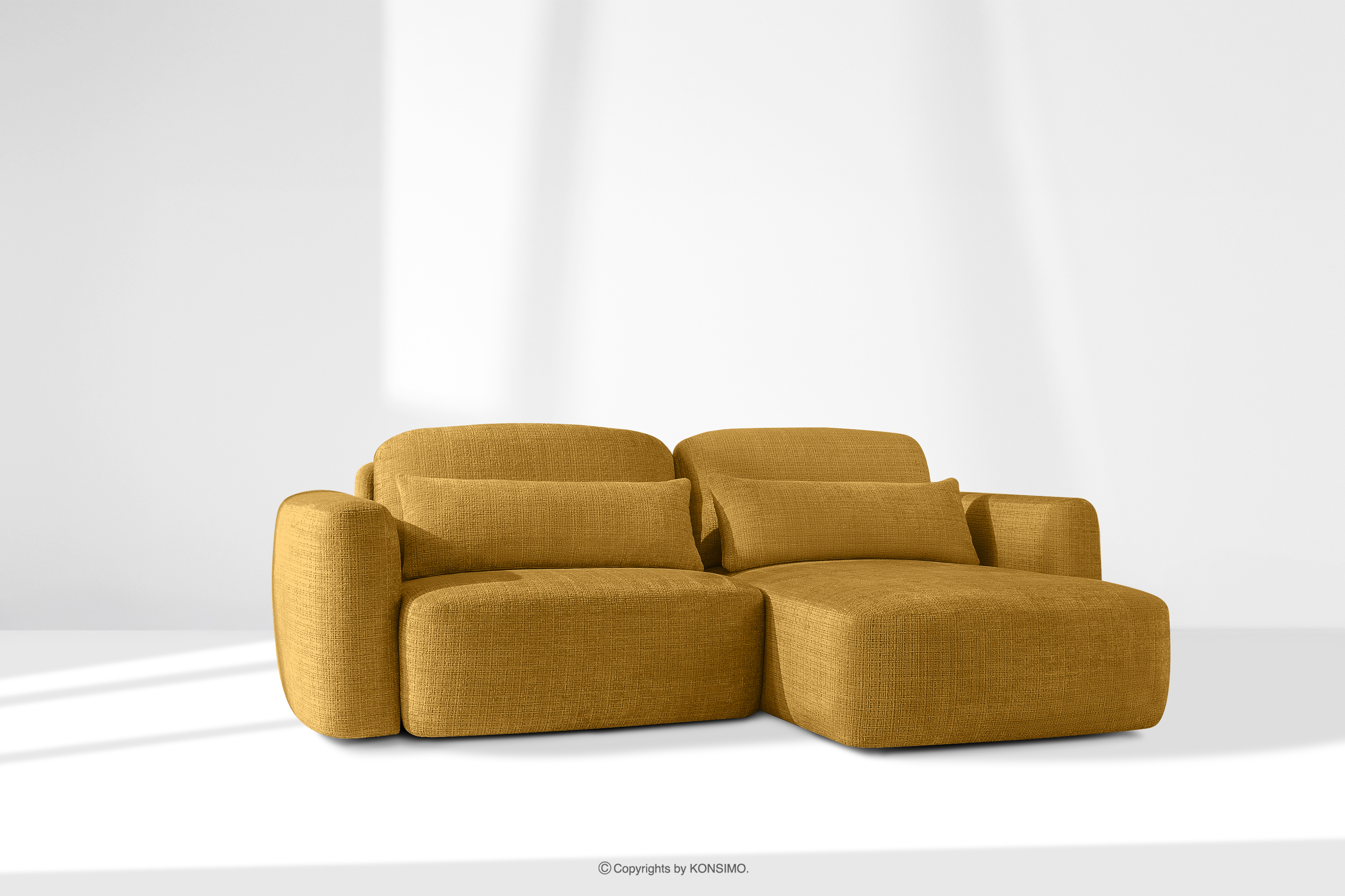 Rechte Ecksofa und Sessel im japanischen Stil gelb revolutioniert das Konzept der Erholung. Das Herzstück ist ein innovativer Sitz, dessen einzigartige, gewölbte Halbmondform nicht nur ein Blickfang ist, sondern vor allem unvergleichlichen Komfort bietet. Dank der Verwendung von B-Wellenunterfederungen und hochwertigem HR30-Schaumstoff ist der Sitz mittelhart und gleichzeitig äußerst elastisch und weich.