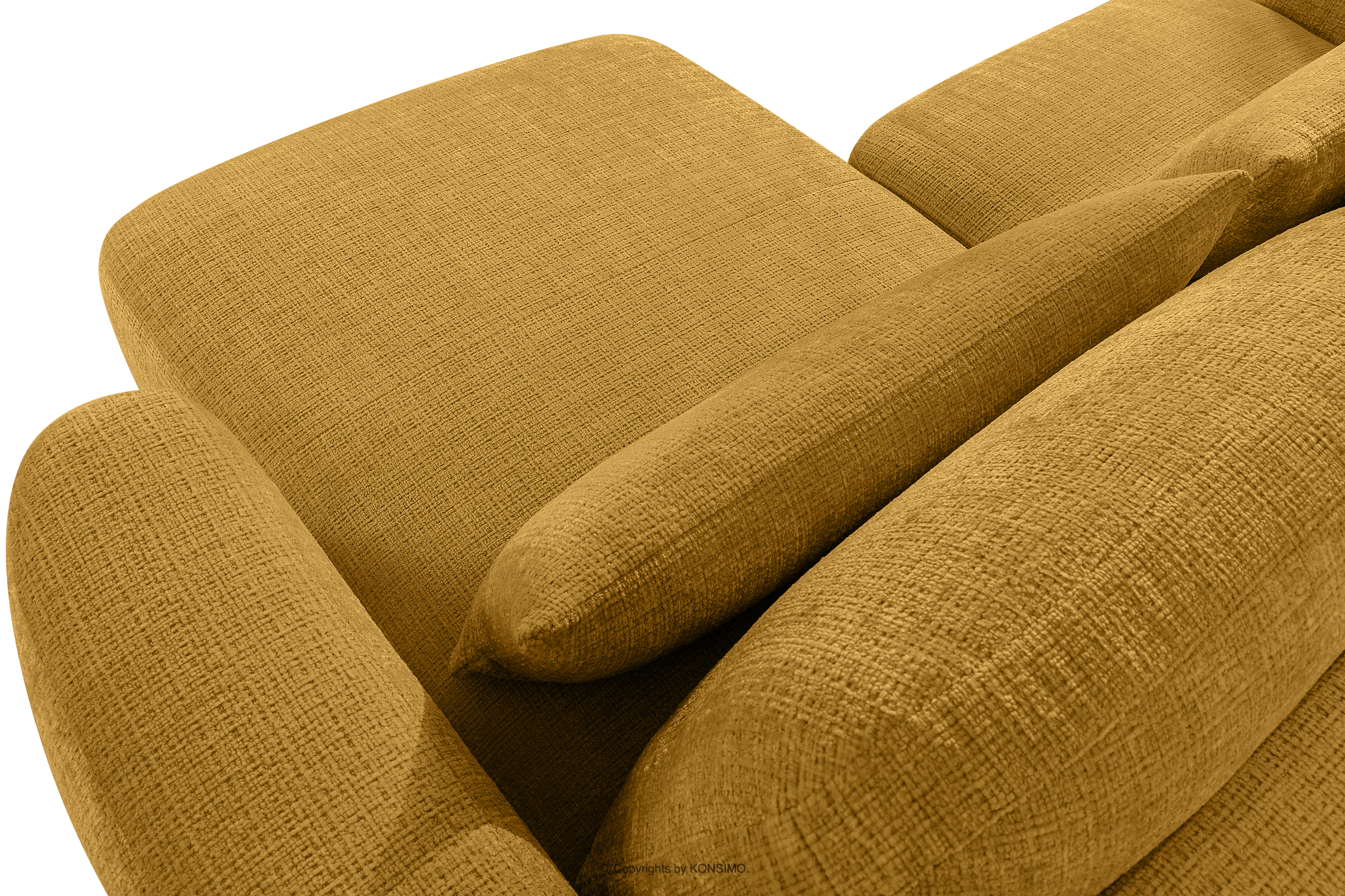 Rechte Ecksofa und Sessel im japanischen Stil gelb revolutioniert das Konzept der Erholung. Das Herzstück ist ein innovativer Sitz, dessen einzigartige, gewölbte Halbmondform nicht nur ein Blickfang ist, sondern vor allem unvergleichlichen Komfort bietet. Dank der Verwendung von B-Wellenunterfederungen und hochwertigem HR30-Schaumstoff ist der Sitz mittelhart und gleichzeitig äußerst elastisch und weich.