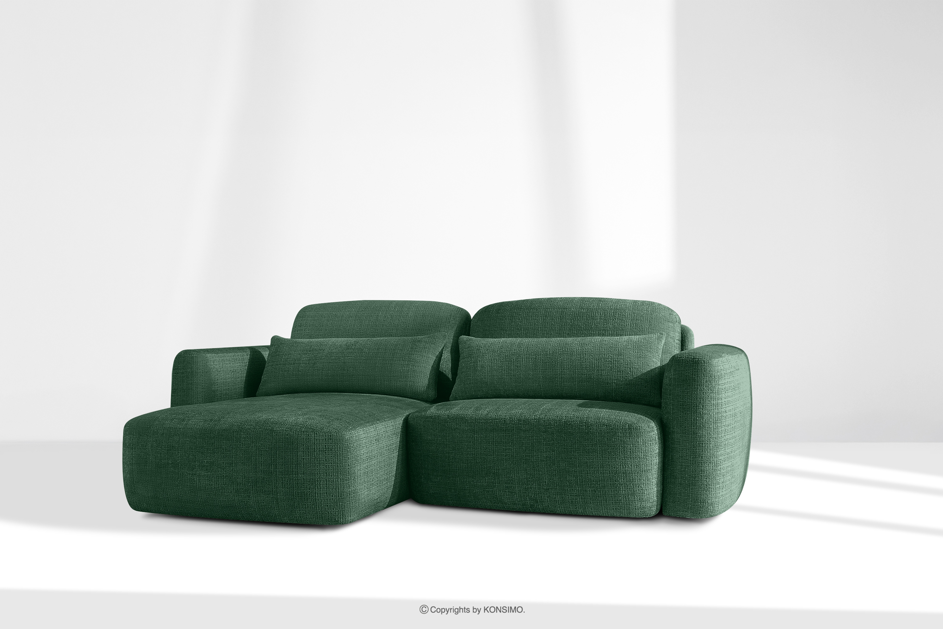 Linkes Ecksofa und Sessel im japanischen Stil grün revolutioniert das Konzept der Erholung. Das Herzstück ist ein innovativer Sitz, dessen einzigartige, gewölbte Halbmondform nicht nur ein Blickfang ist, sondern vor allem unvergleichlichen Komfort bietet. Dank der Verwendung von B-Wellenunterfederungen und hochwertigem HR30-Schaumstoff ist der Sitz mittelhart und gleichzeitig äußerst elastisch und weich.