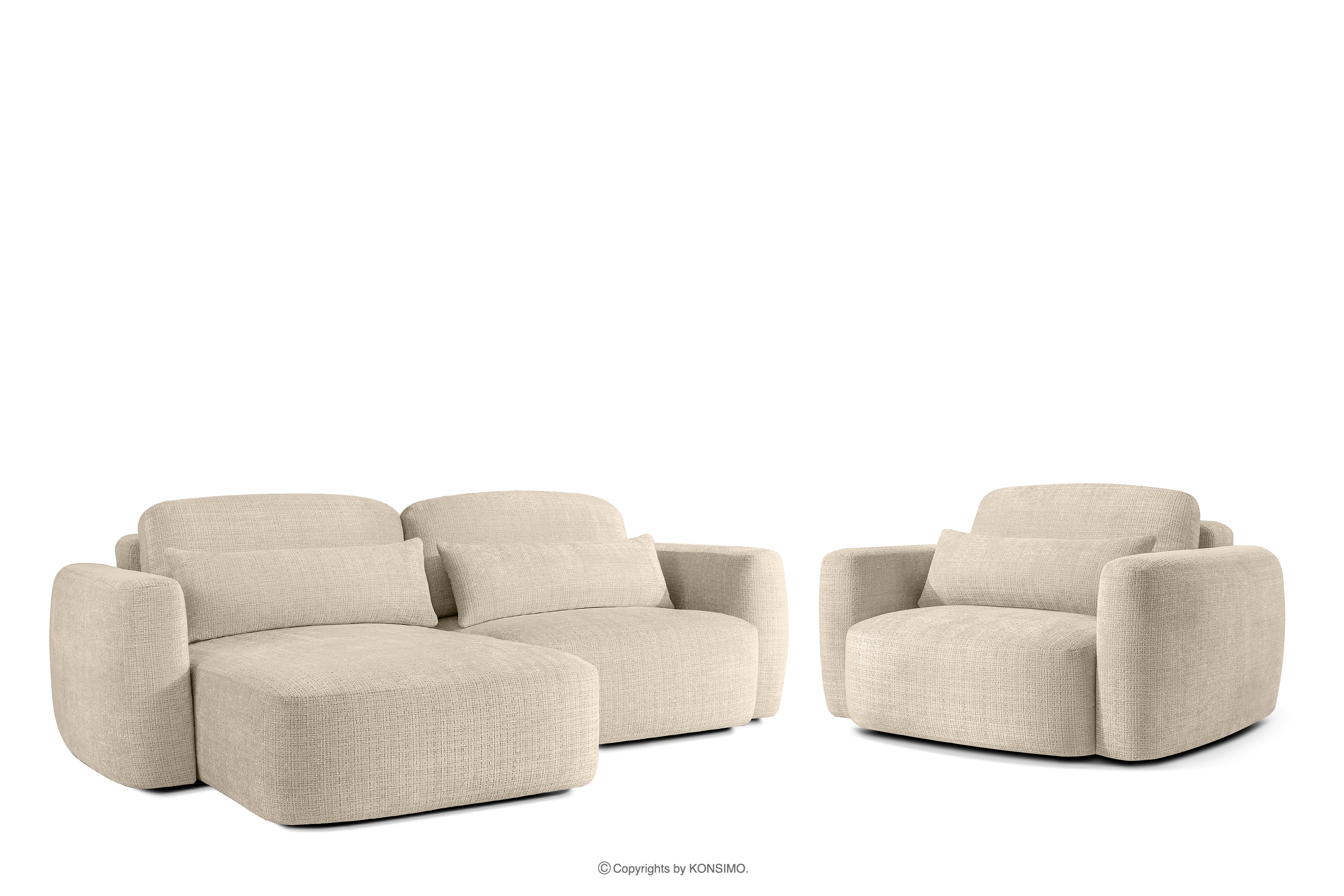 ELOSA Linkes Ecksofa und Sessel im Japandi-Stil cremefarben Chenille