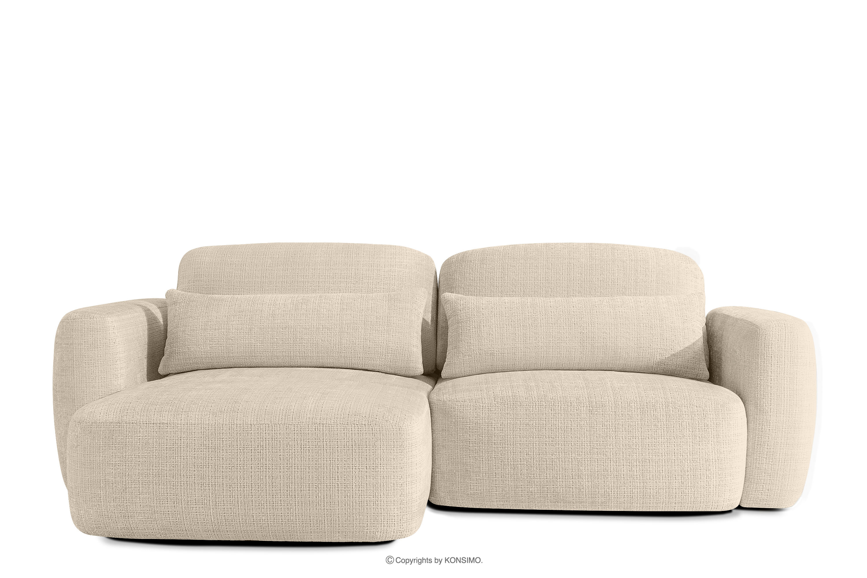 Linkes Ecksofa und Sessel im Japandi-Stil cremefarben Chenille revolutioniert das Konzept der Erholung. Das Herzstück ist ein innovativer Sitz, dessen einzigartige, gewölbte Halbmondform nicht nur ein Blickfang ist, sondern vor allem unvergleichlichen Komfort bietet. Dank der Verwendung von B-Wellenunterfederungen und hochwertigem HR30-Schaumstoff ist der Sitz mittelhart und gleichzeitig äußerst elastisch und weich.