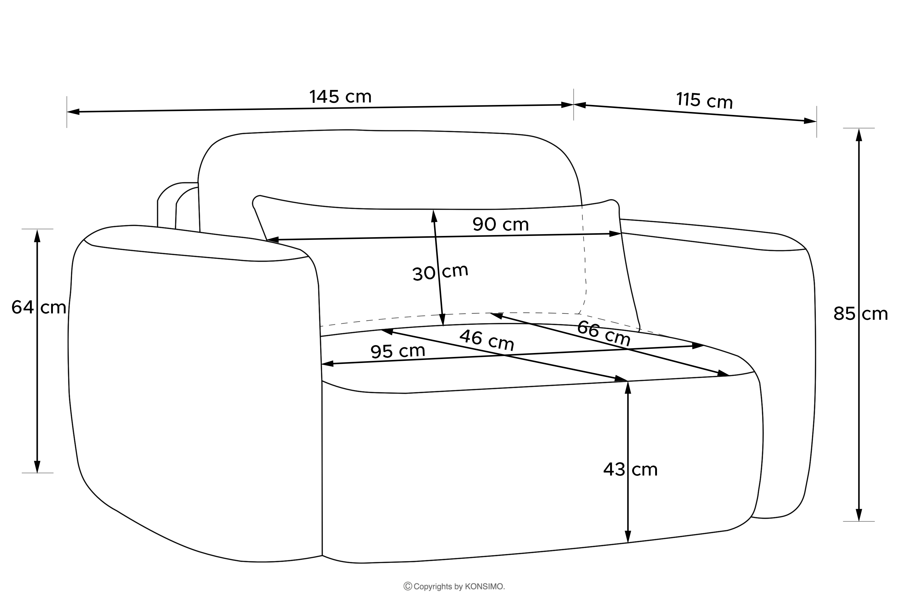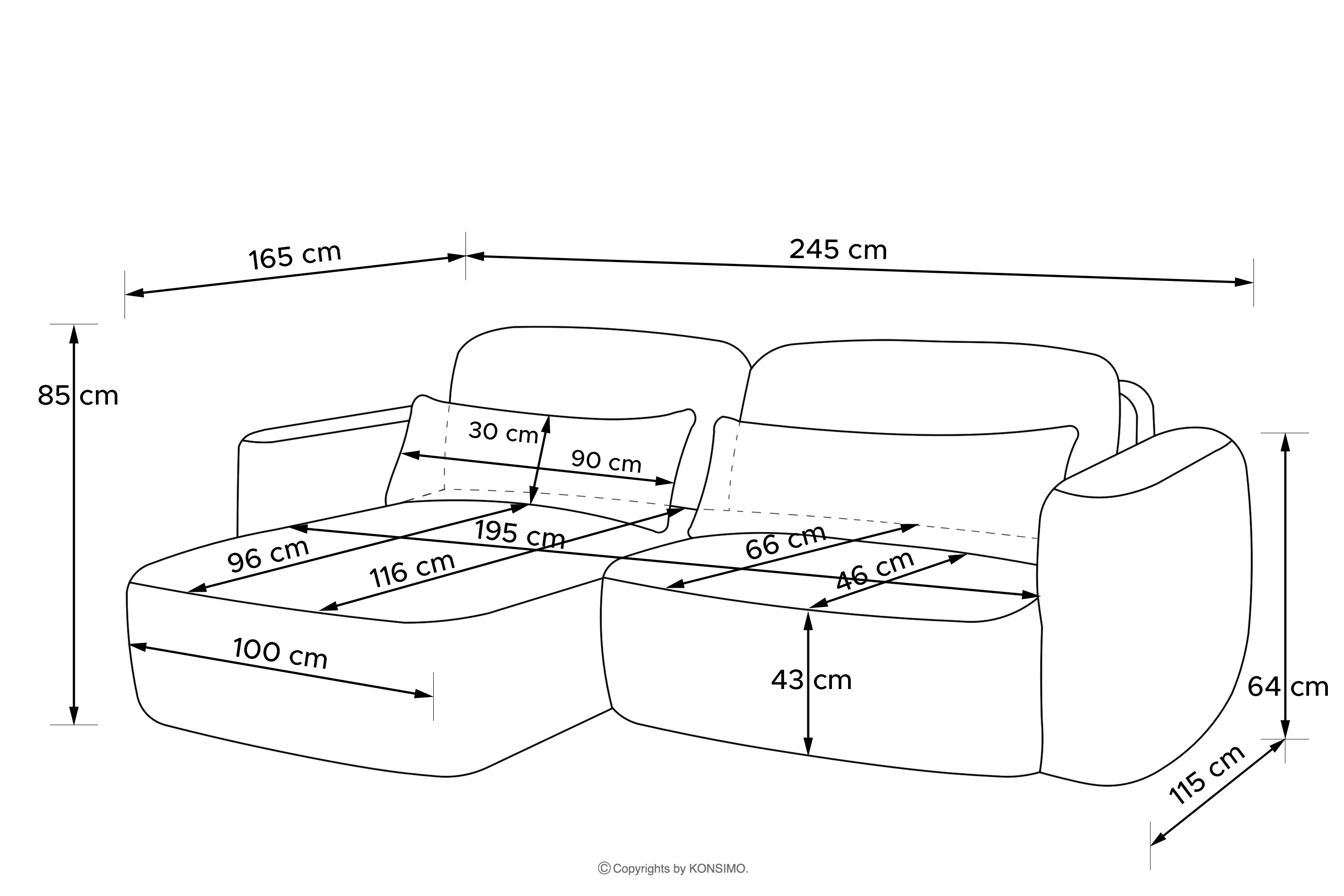 - Sitzfläche (cm): 245x85x115
