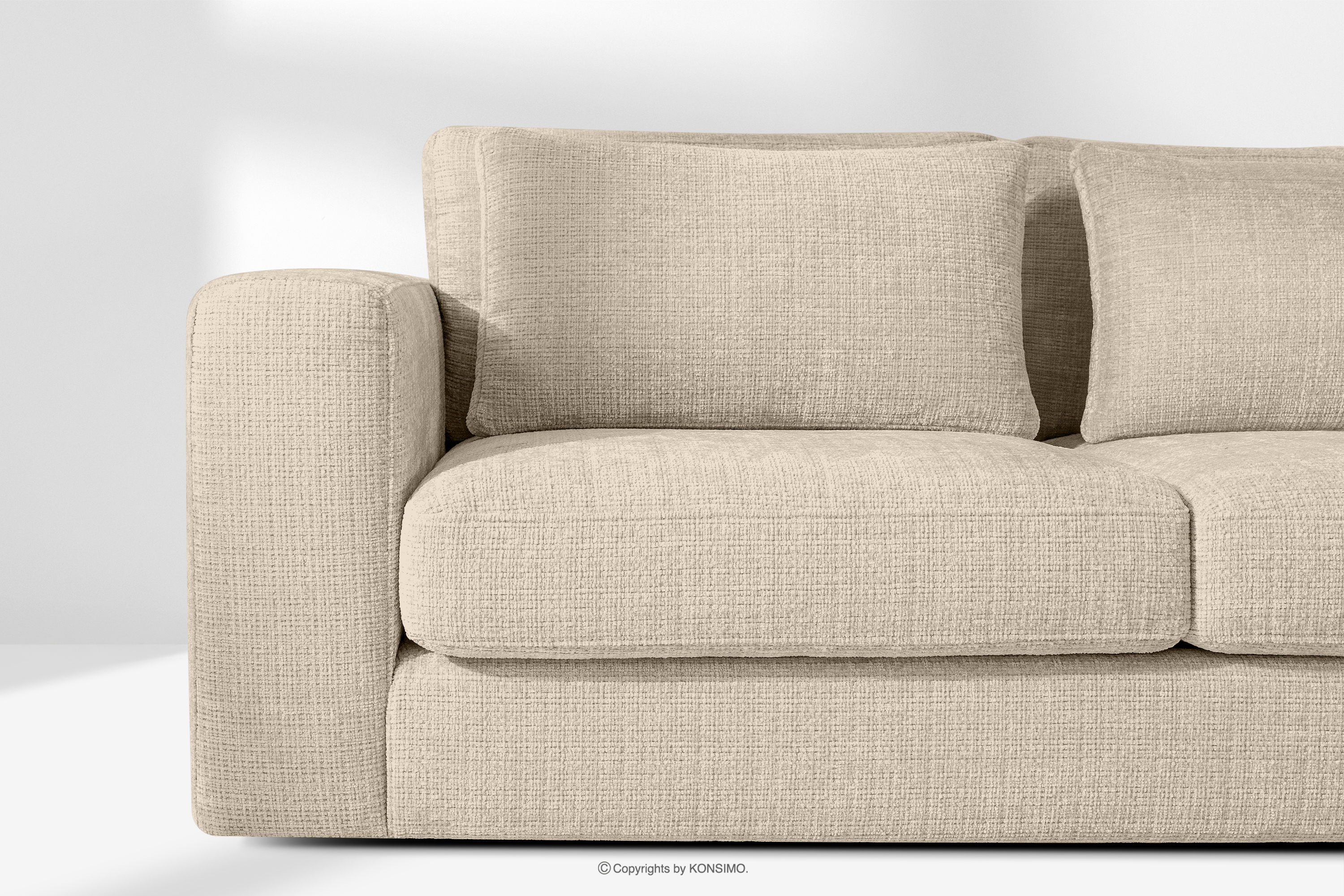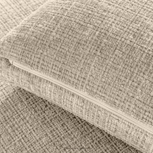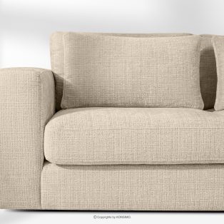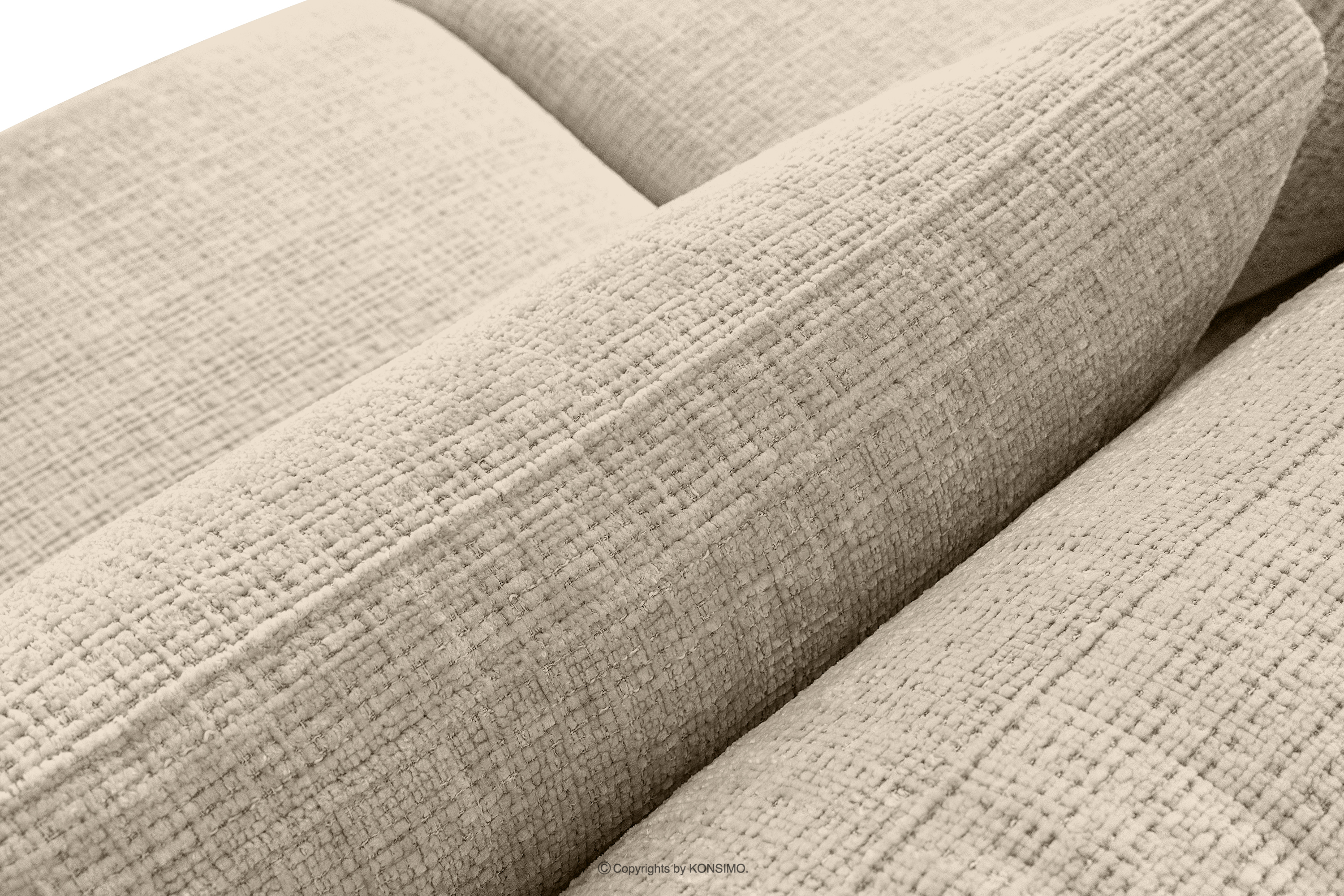 Weiches Ecksofa für das Wohnzimmer Chenille-Stoff rechts cremefarben ist die Quintessenz zeitloser Eleganz und unvergleichlichen Komforts, entworfen für die anspruchsvollsten Nutzer. Es ist ein Möbelstück, das mit Stolz den Titel „KLASSIKER ÜBER KLASSIKERN” trägt und edle Handwerkstradition mit innovativen Lösungen für maximale Ergonomie verbindet. Der Sitz dieses einzigartigen Ecksofas wurde auf der Grundlage hochwertiger Polstergurte und 17 cm dickem HR 30/120-Schaumstoff konstruiert, die eine solide und elastische Basis bilden.