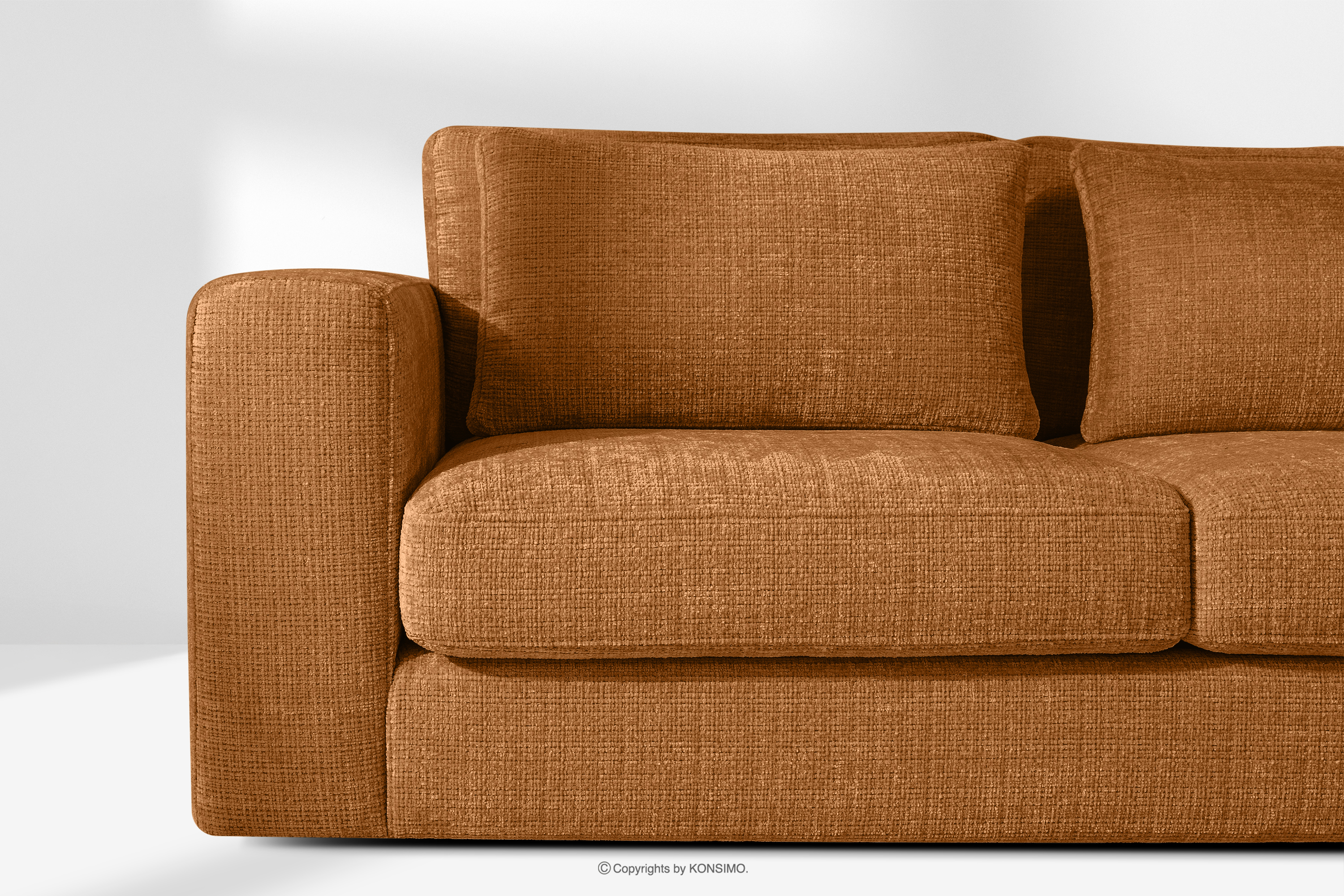 Weiches Ecksofa aus Chenille-Stoff rechts rot ist die Quintessenz zeitloser Eleganz und unvergleichlichen Komforts, entworfen für die anspruchsvollsten Nutzer. Es ist ein Möbelstück, das mit Stolz den Titel „KLASSIKER ÜBER KLASSIKERN” trägt und edle Handwerkstradition mit innovativen Lösungen für maximale Ergonomie verbindet. Der Sitz dieses einzigartigen Ecksofas wurde auf der Grundlage hochwertiger Polstergurte und 17 cm dickem HR 30/120-Schaumstoff konstruiert, die eine solide und elastische Basis bilden.
