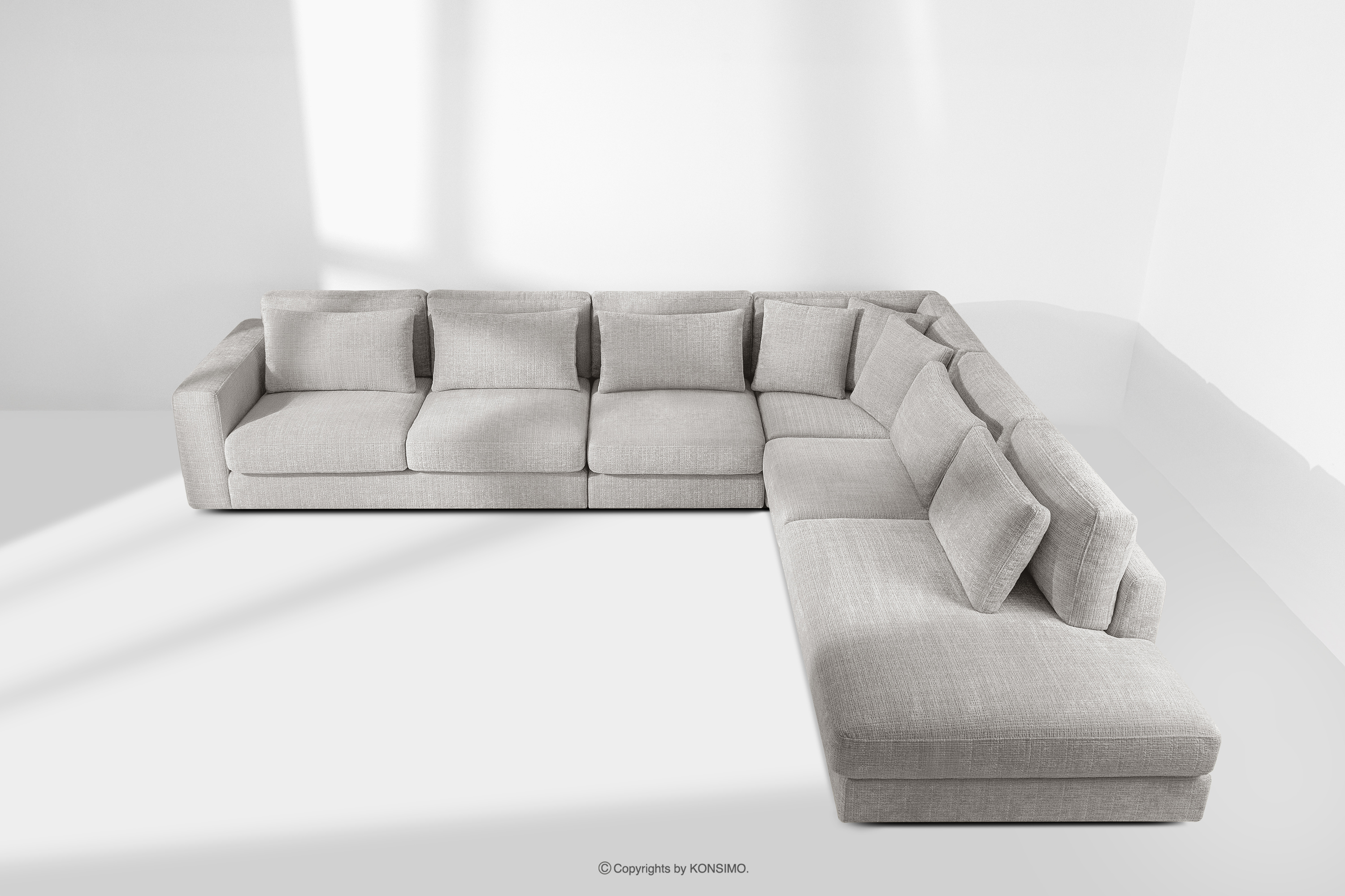 VERUS Großes bequemes Ecksofa für das Wohnzimmer Chenille-Stoff rechts hellgrau