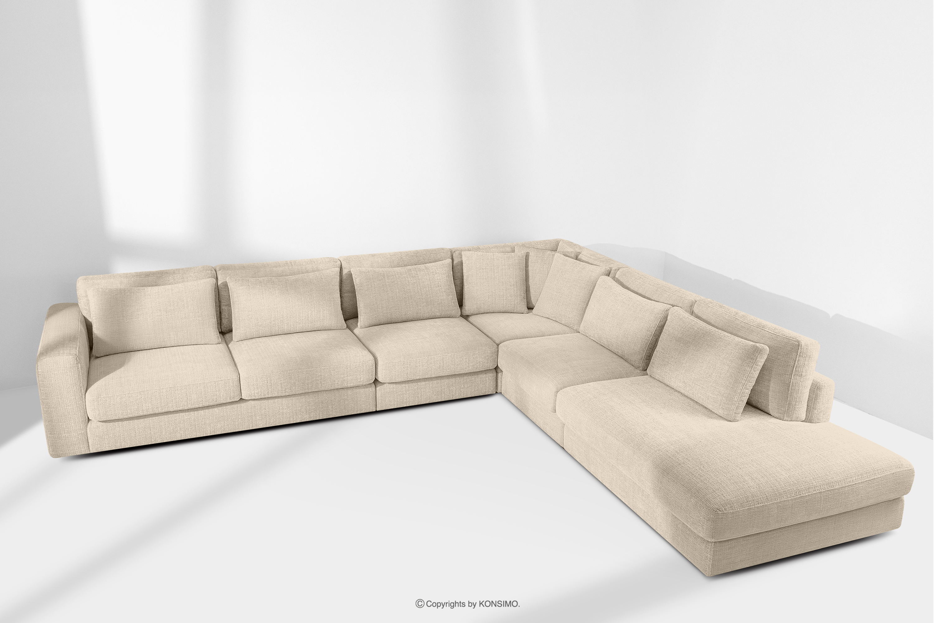 VERUS Großes bequemes Ecksofa für das Wohnzimmer Chenille-Stoff rechts cremefarben