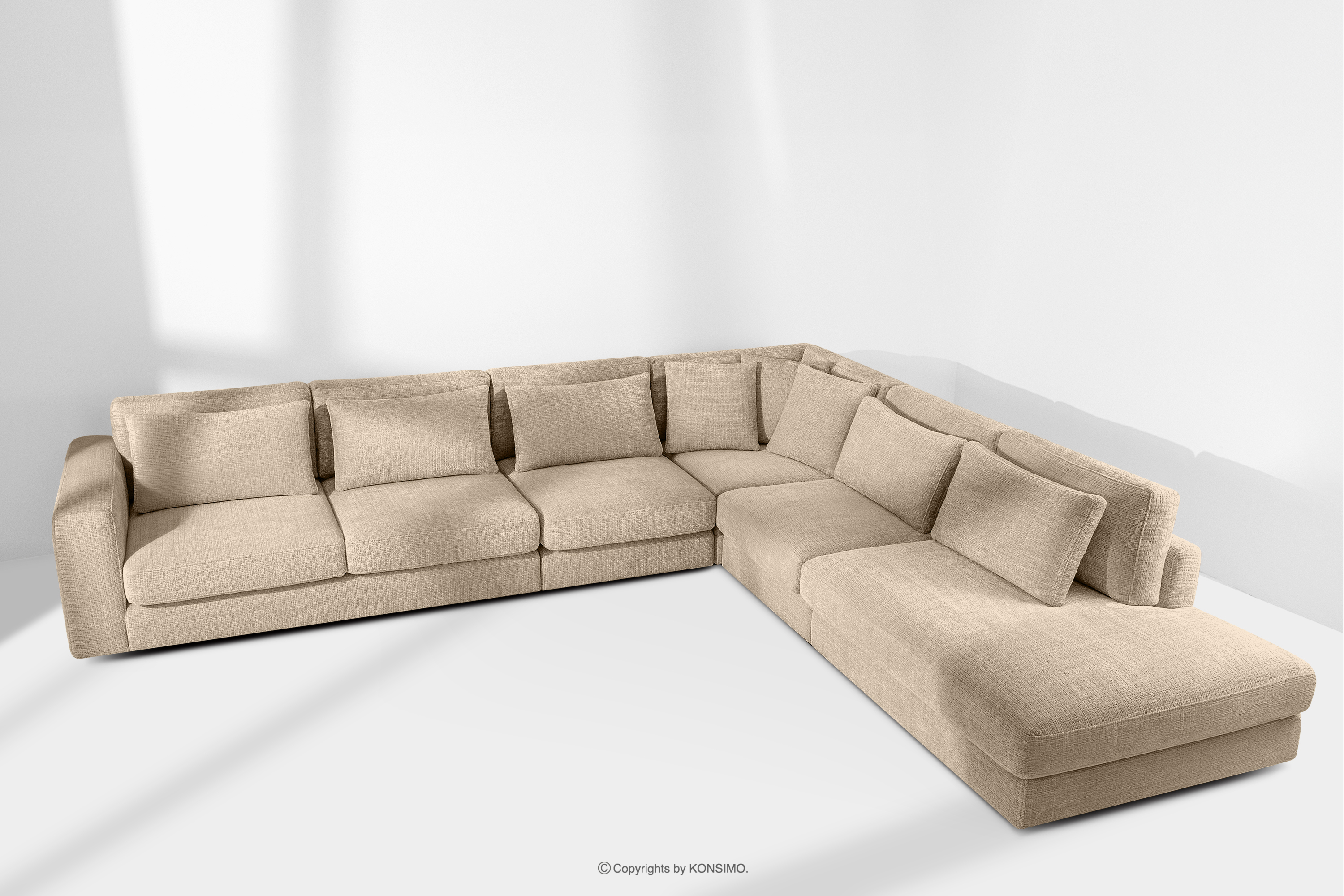VERUS Großes bequemes Ecksofa für das Wohnzimmer Chenille-Stoff rechts beige
