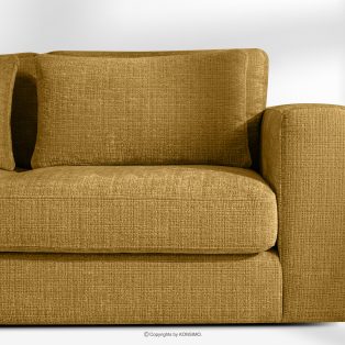 Großes Ecksofa aus Chenille-Stoff links gelb ist die Quintessenz zeitloser Eleganz und unvergleichlichen Komforts, entworfen für die anspruchsvollsten Nutzer. Es ist ein Möbelstück, das mit Stolz den Titel „KLASSIKER ÜBER KLASSIKERN” trägt und edle Handwerkstradition mit innovativen Lösungen für maximale Ergonomie verbindet. Der Sitz dieses einzigartigen Ecksofas wurde auf der Grundlage hochwertiger Polstergurte und 17 cm dickem HR 30/120-Schaumstoff konstruiert, die eine solide und elastische Basis bilden.