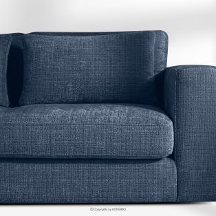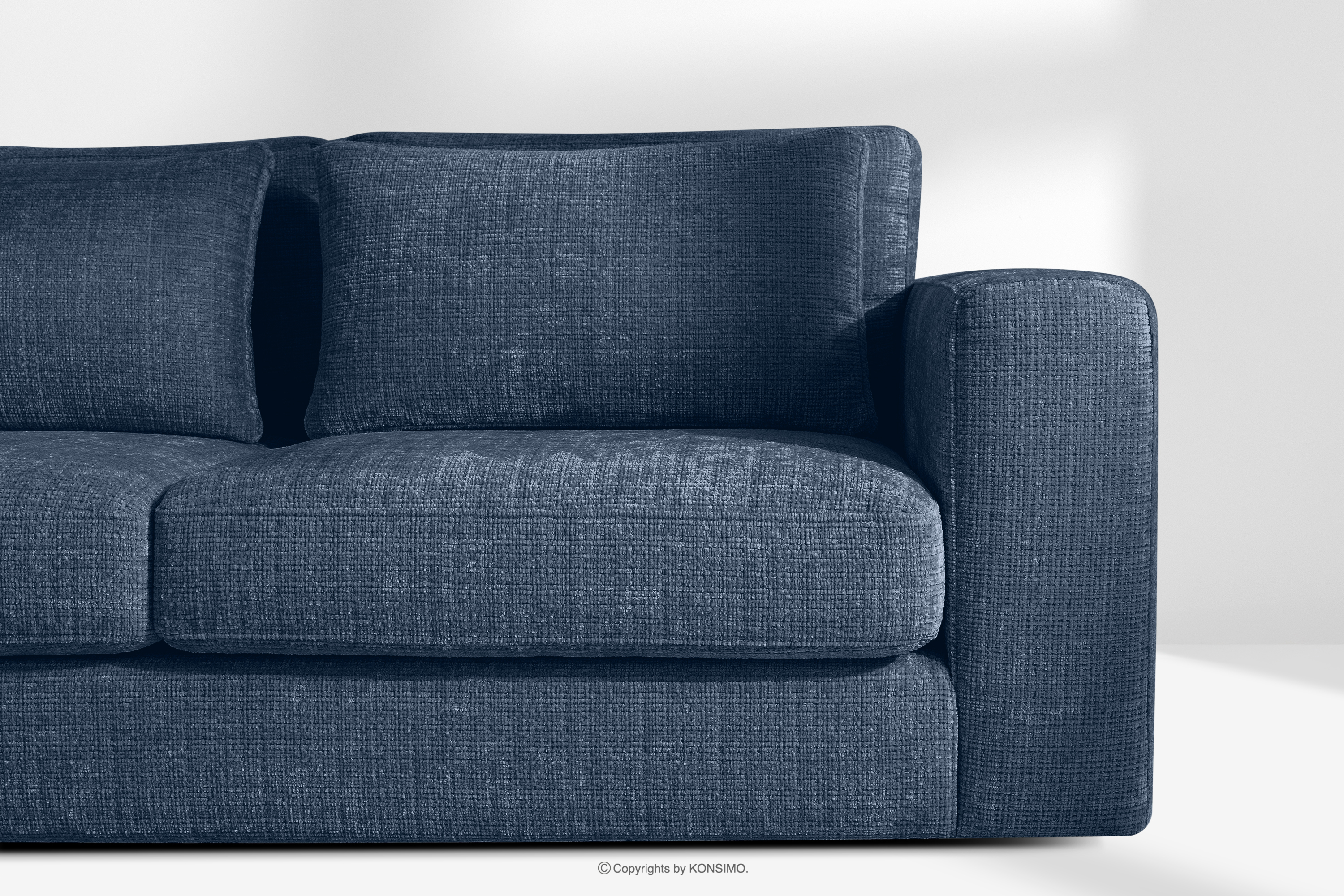 Großes Ecksofa aus Chenille-Stoff links dunkelblau ist die Quintessenz zeitloser Eleganz und unvergleichlichen Komforts, entworfen für die anspruchsvollsten Nutzer. Es ist ein Möbelstück, das mit Stolz den Titel „KLASSIKER ÜBER KLASSIKERN” trägt und edle Handwerkstradition mit innovativen Lösungen für maximale Ergonomie verbindet. Der Sitz dieses einzigartigen Ecksofas wurde auf der Grundlage hochwertiger Polstergurte und 17 cm dickem HR 30/120-Schaumstoff konstruiert, die eine solide und elastische Basis bilden.