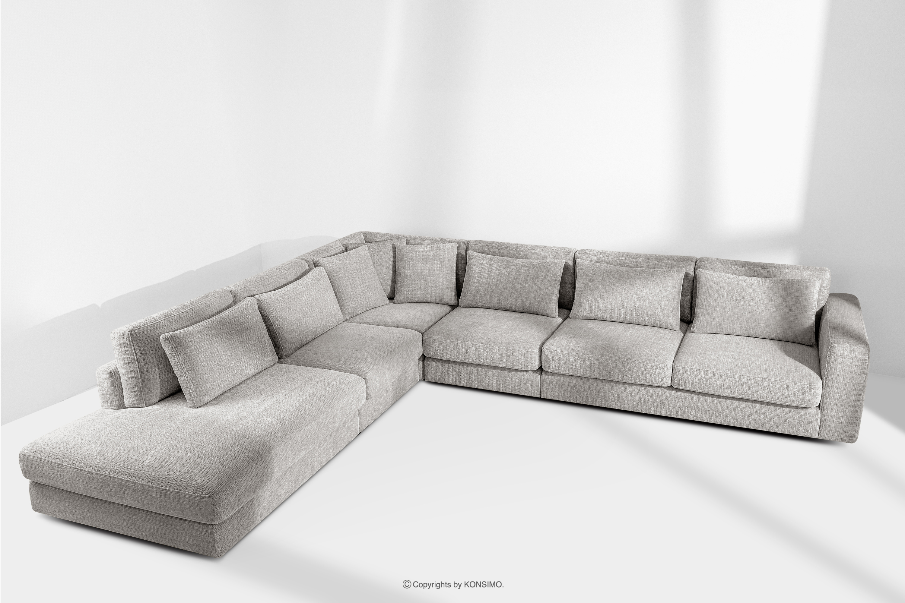VERUS Mehr aus der Kollektion Große bequeme Ecksofa für das Wohnzimmer Chenille-Stoff links hellgrau- Farbe hellgrau