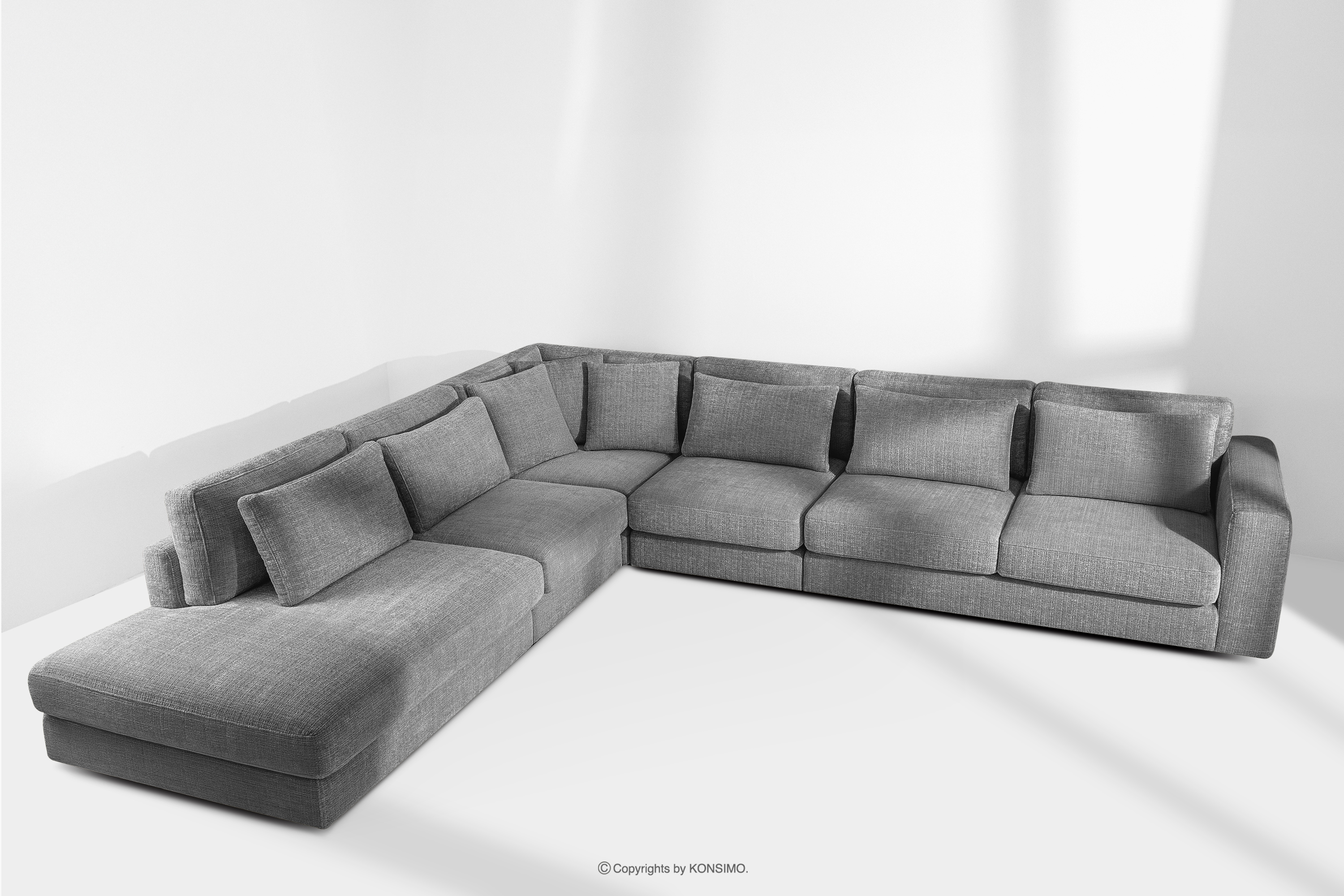 VERUS Große bequeme Ecksofa für das Wohnzimmer Chenille-Stoff links dunkelgrau