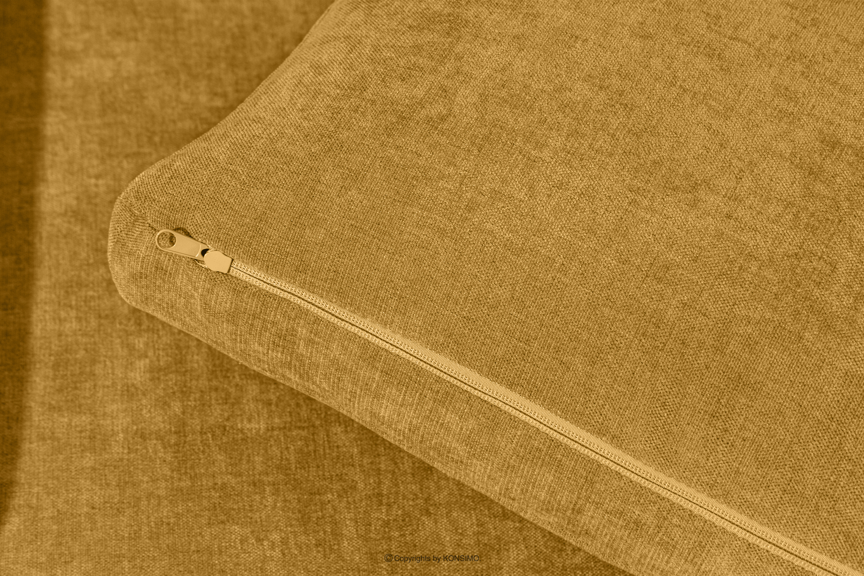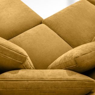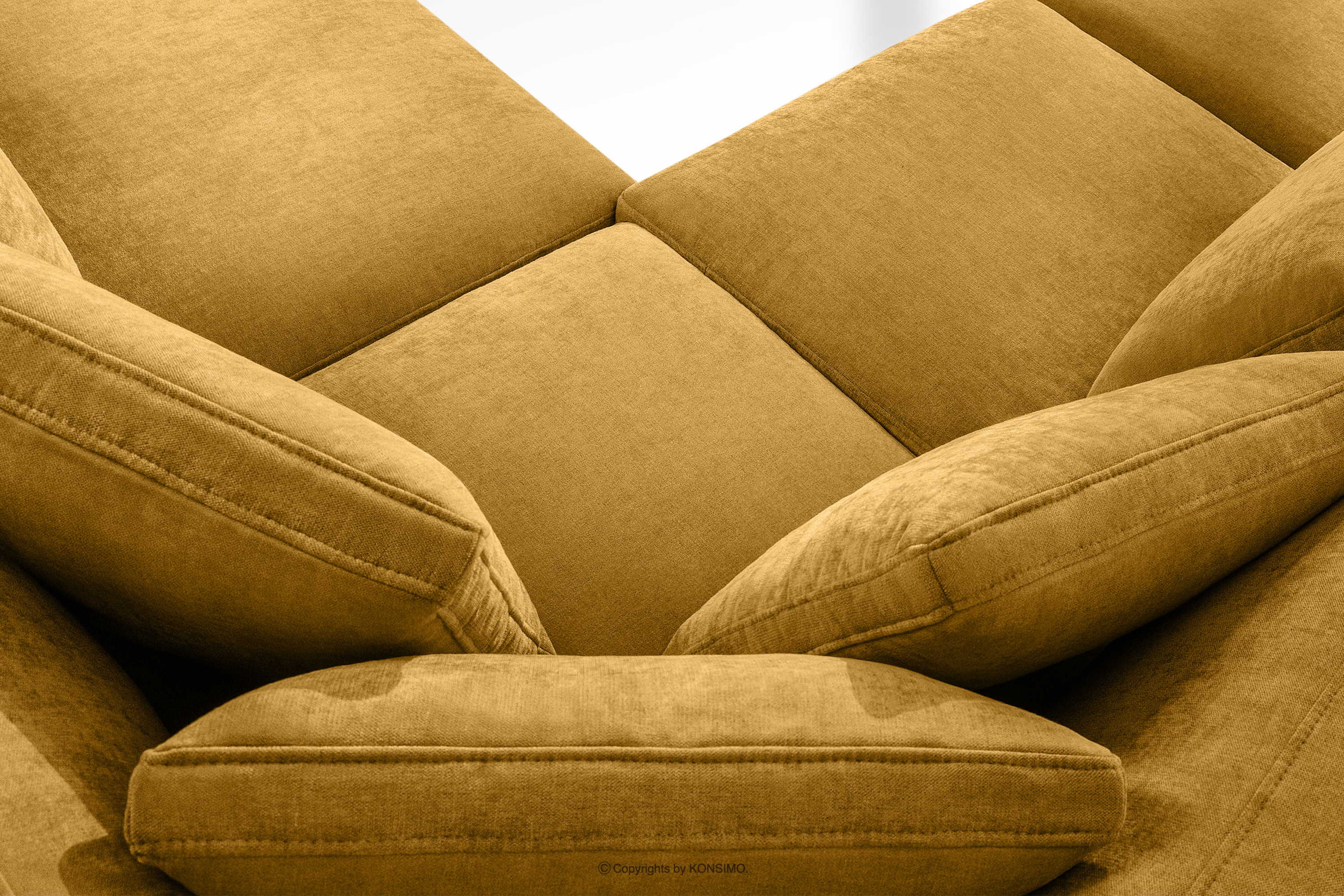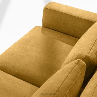 Bequeme Ecksofa aus Gewebestoff rechts gelb ist die Quintessenz zeitloser Eleganz und unvergleichlichen Komforts, entworfen für die anspruchsvollsten Nutzer. Es ist ein Möbelstück, das mit Stolz den Titel „KLASSIKER ÜBER KLASSIKERN” trägt und edle Handwerkstradition mit innovativen Lösungen für maximale Ergonomie verbindet. Der Sitz dieses einzigartigen Ecksofas wurde auf der Grundlage hochwertiger Polstergurte und 17 cm dickem HR 30/120-Schaumstoff konstruiert, die eine solide und elastische Basis bilden.